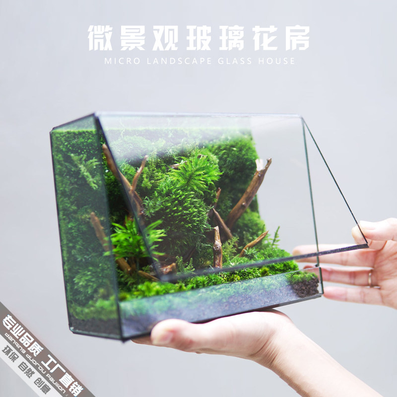 📚 微景观几何玻璃花房苔藓墙玻璃缸桌面生态瓶造景植物微缩森林景观