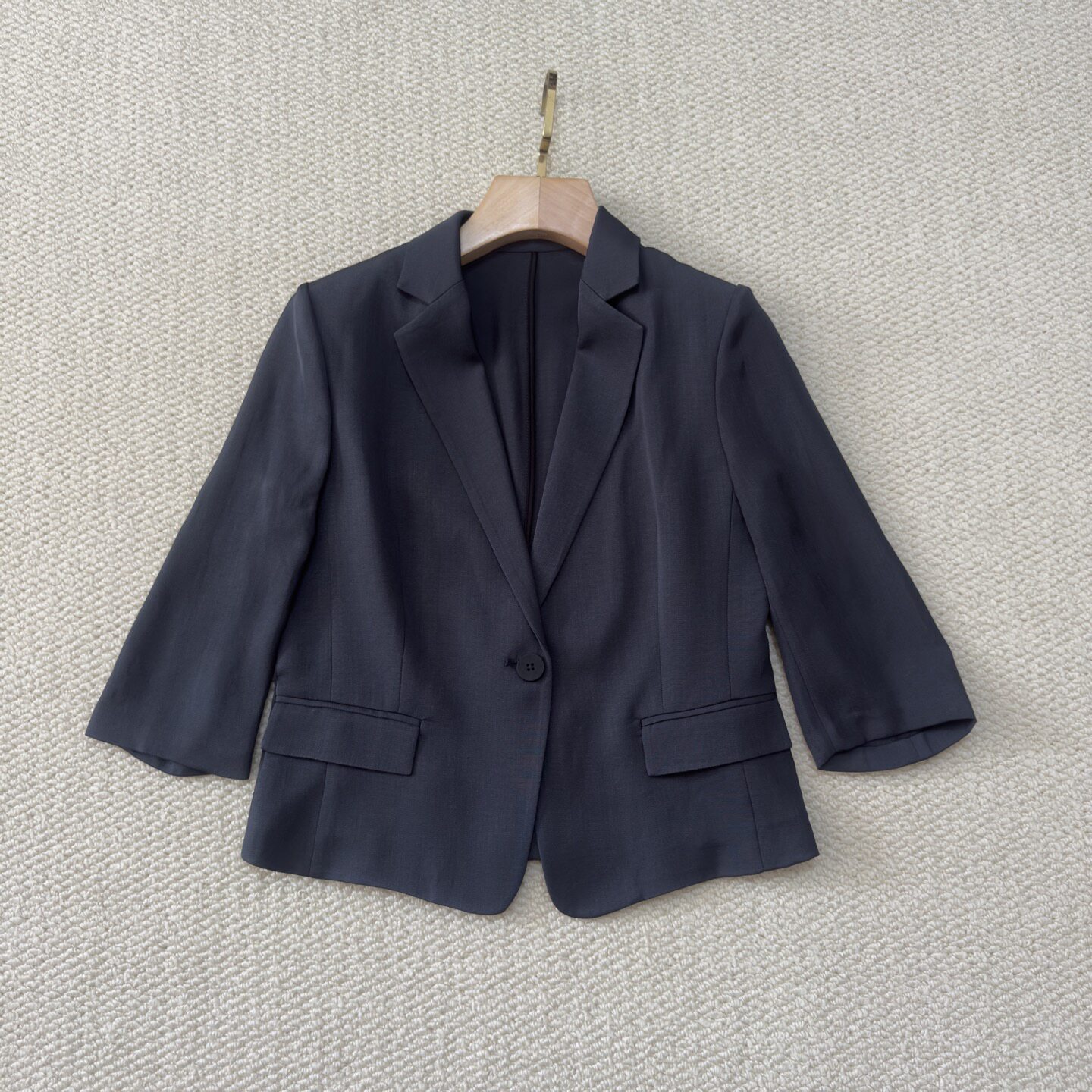 📚 YI同款 2025早秋新款女装 醋纤仿麻可水洗一粒扣收腰短款中袖西装