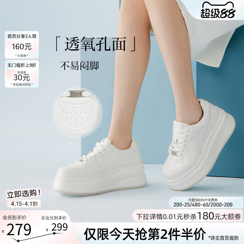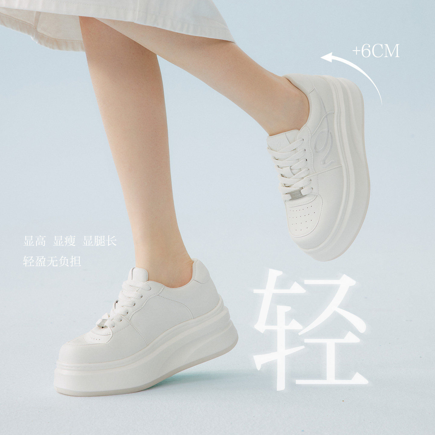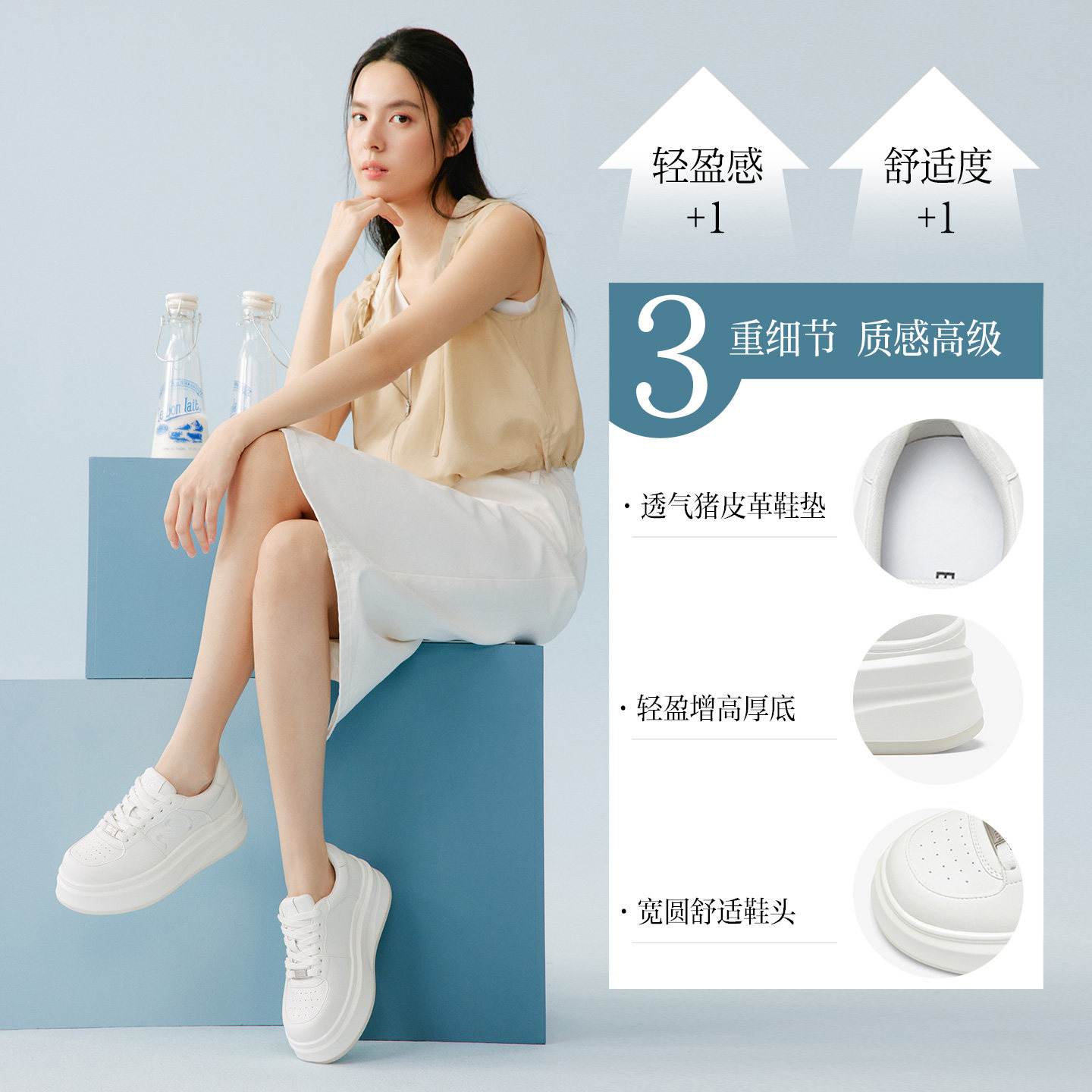 📚 【小奶包】百思图26春新款厚底百搭小白鞋板鞋松糕鞋运动女休闲鞋