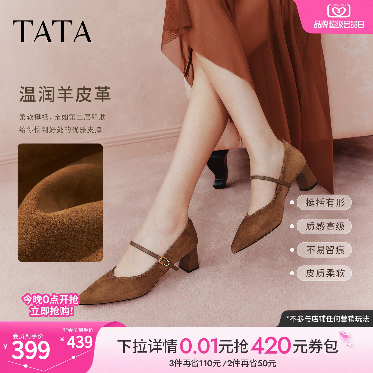 📚 TATA他她粗跟玛丽珍鞋女羊皮高跟鞋尖头单鞋女鞋2026新款XGM06AQ6