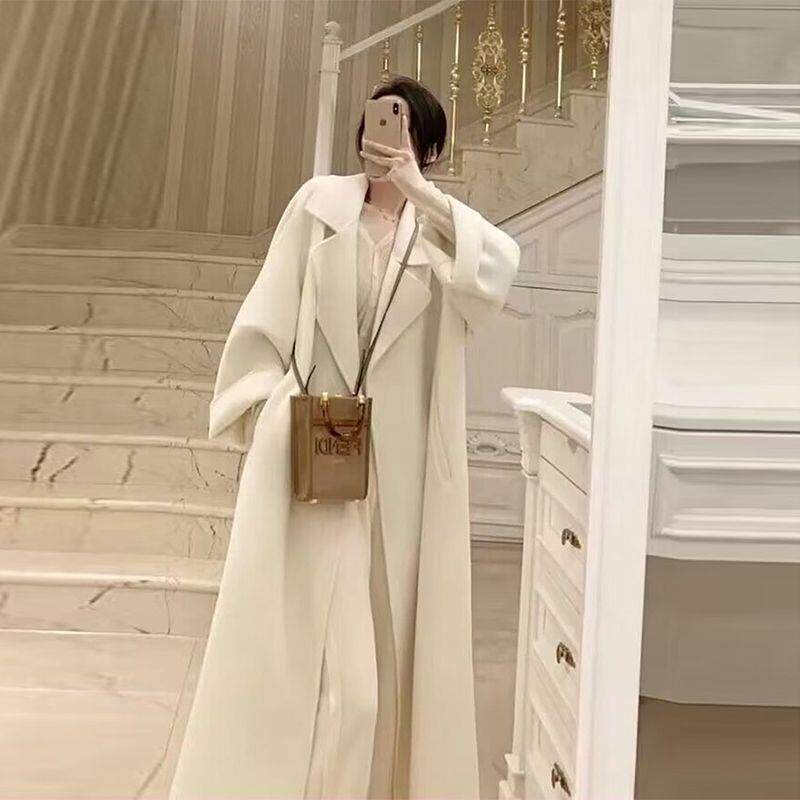 📚 新款高级感宽松毛呢外套女大码秋冬季中长款百搭小个子红色大衣