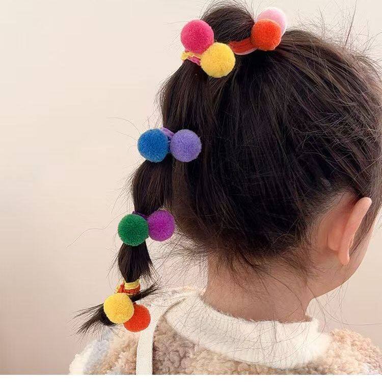 📚 女孩彩色毛球发绳超萌橡皮筋新款幼儿园女童可爱发圈高弹头饰弹力