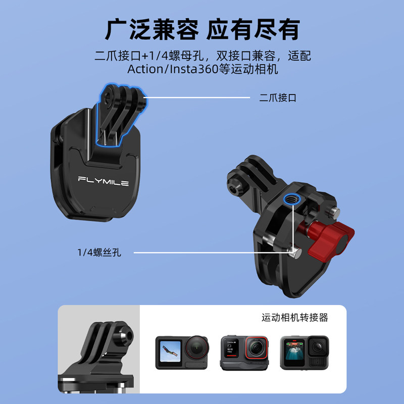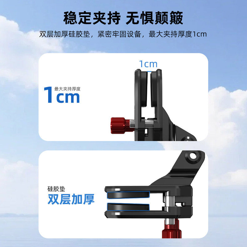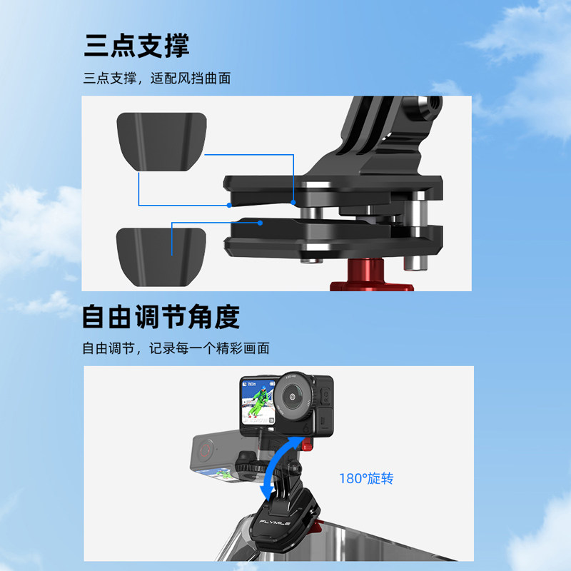 📚 Flymile适用大疆Osmo Action 6摩托车风挡夹支架Action4/5Pro运动相机挡风夹固定支架电动车Vlog骑行支架配件