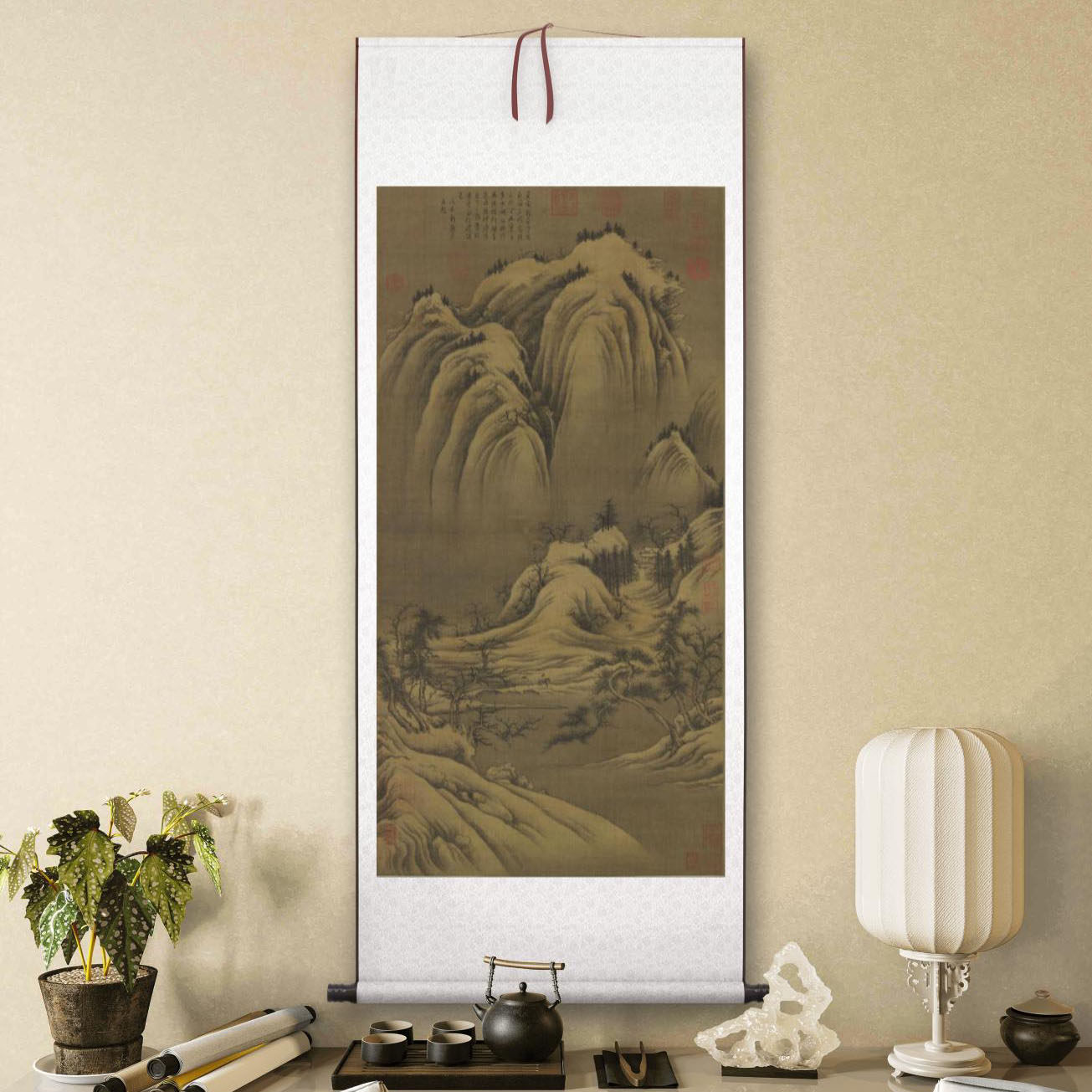 📚 1:1五代 巨然 雪图 山水雪景国画挂画装饰画高清喷绘复制临摹范本