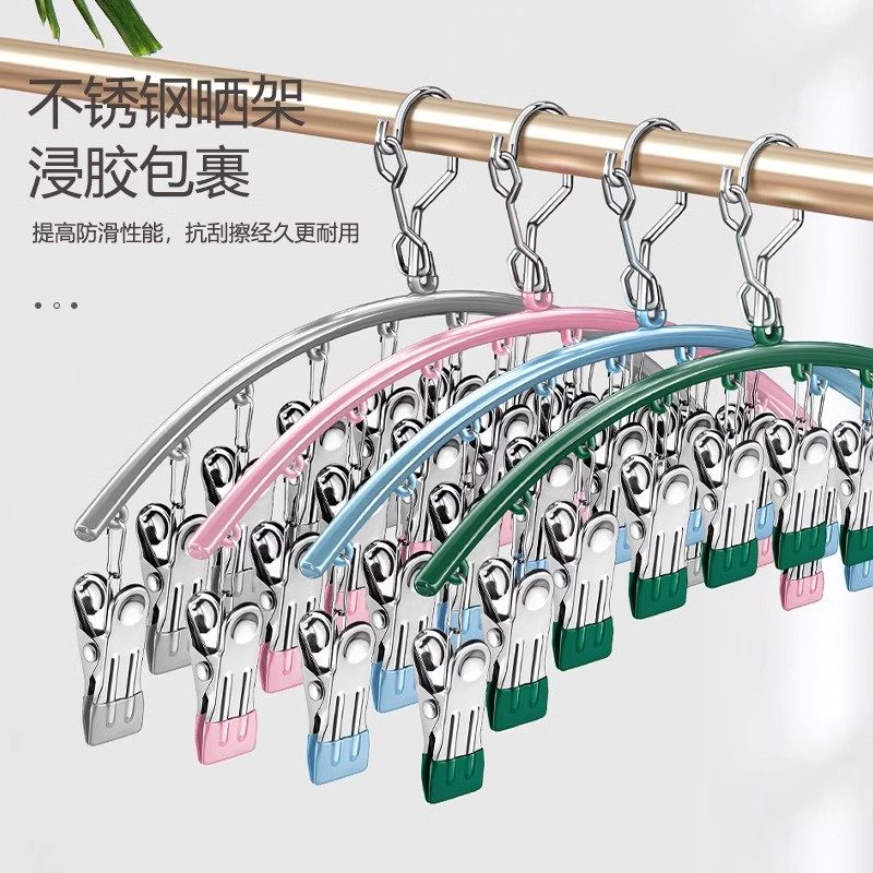 📚 不锈钢袜子夹晾衣架学生宿舍防风挂袜子架多功能内衣裤晒袜子神器