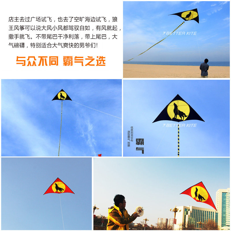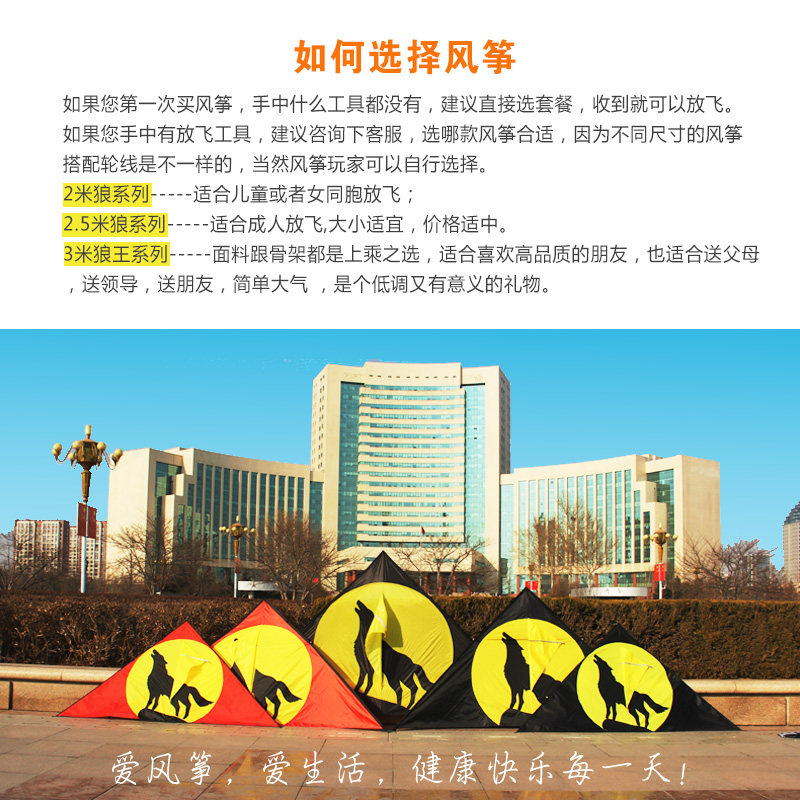 📚 新款风筝潍坊百特碳杆微风伞布狼王风筝大型成人风筝带线轮微风