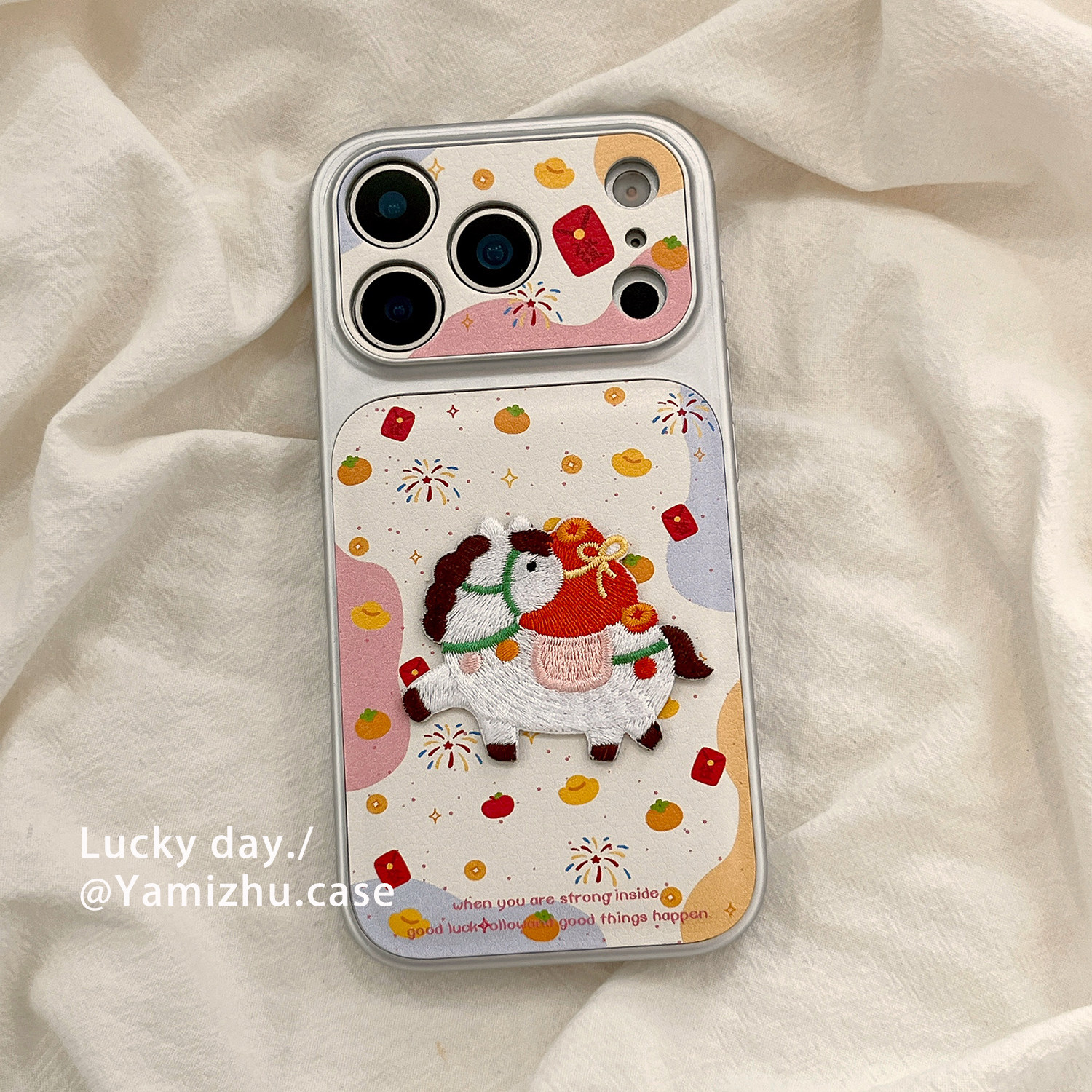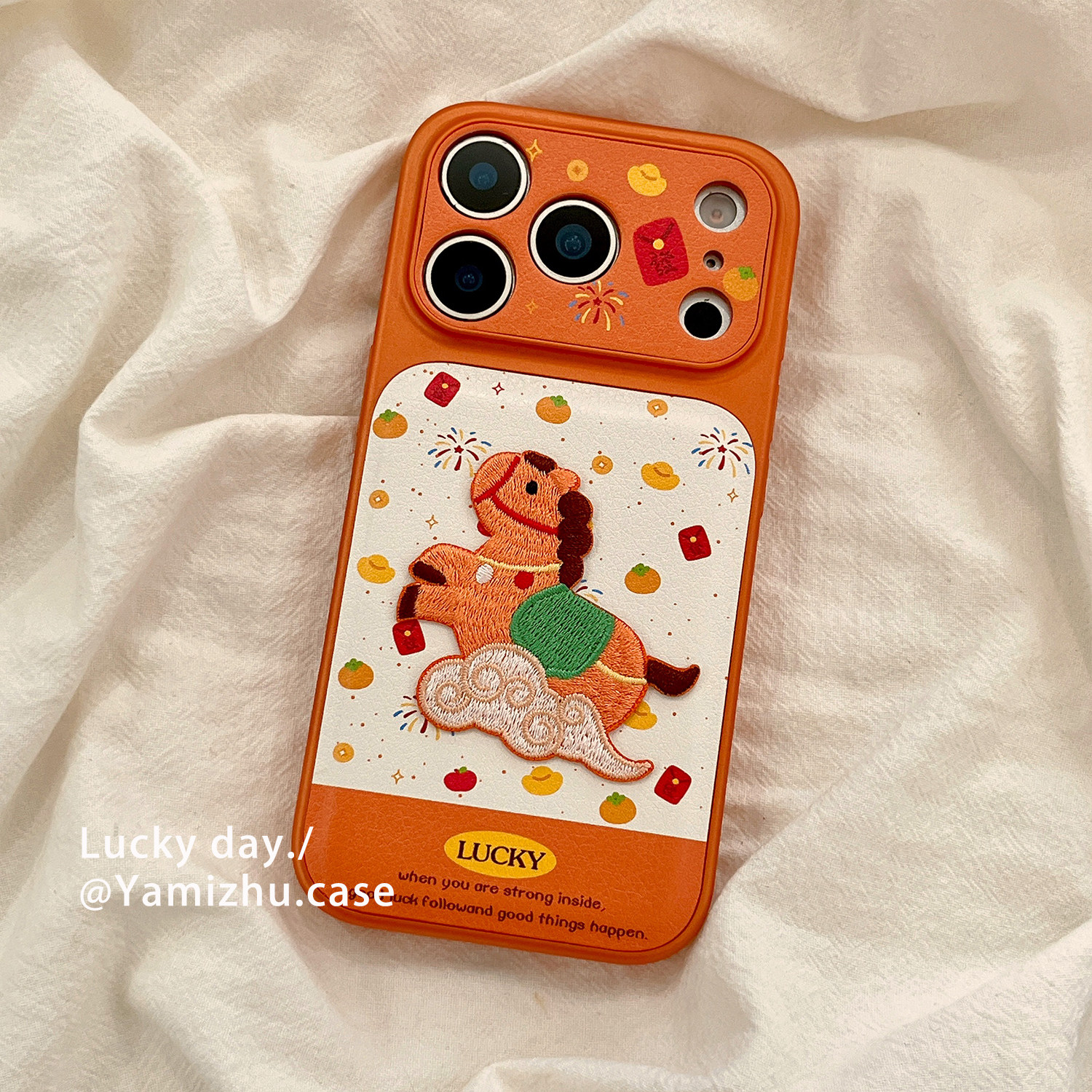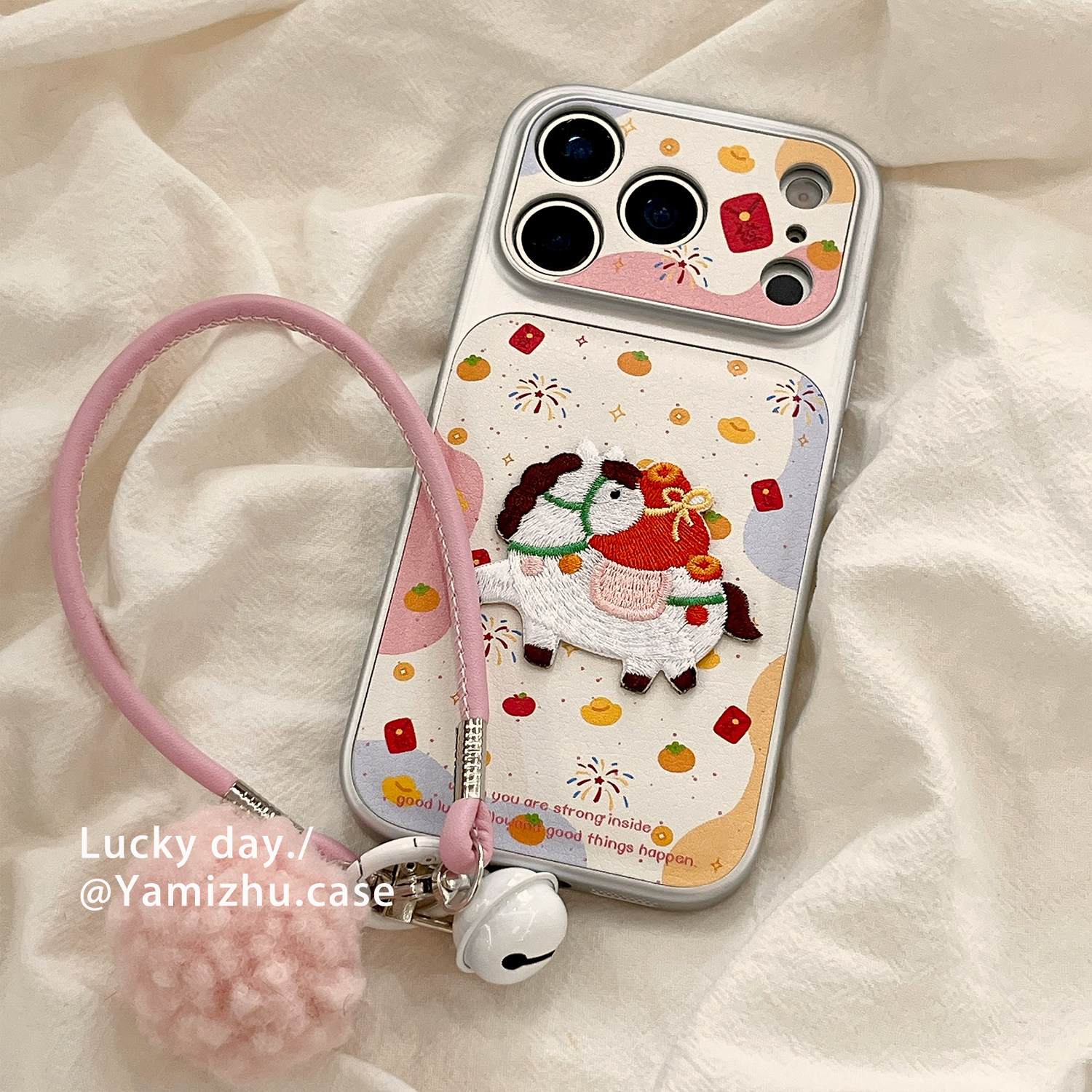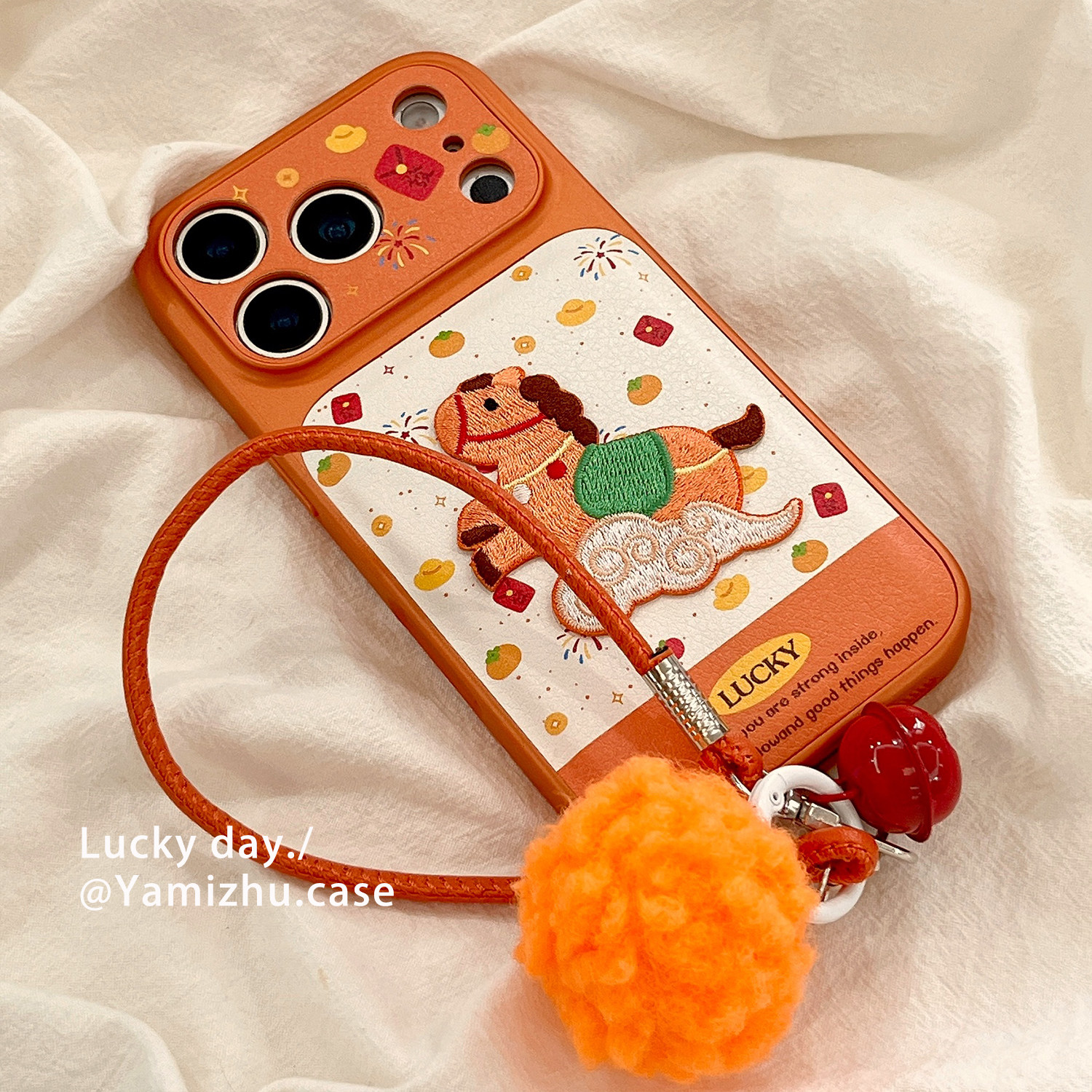 📚 新年刺绣卡通带挂链适用苹果17PRO手机壳情侣国风iPhone16ProMax新款15pro女款小众13硅胶14防摔简约全包软壳