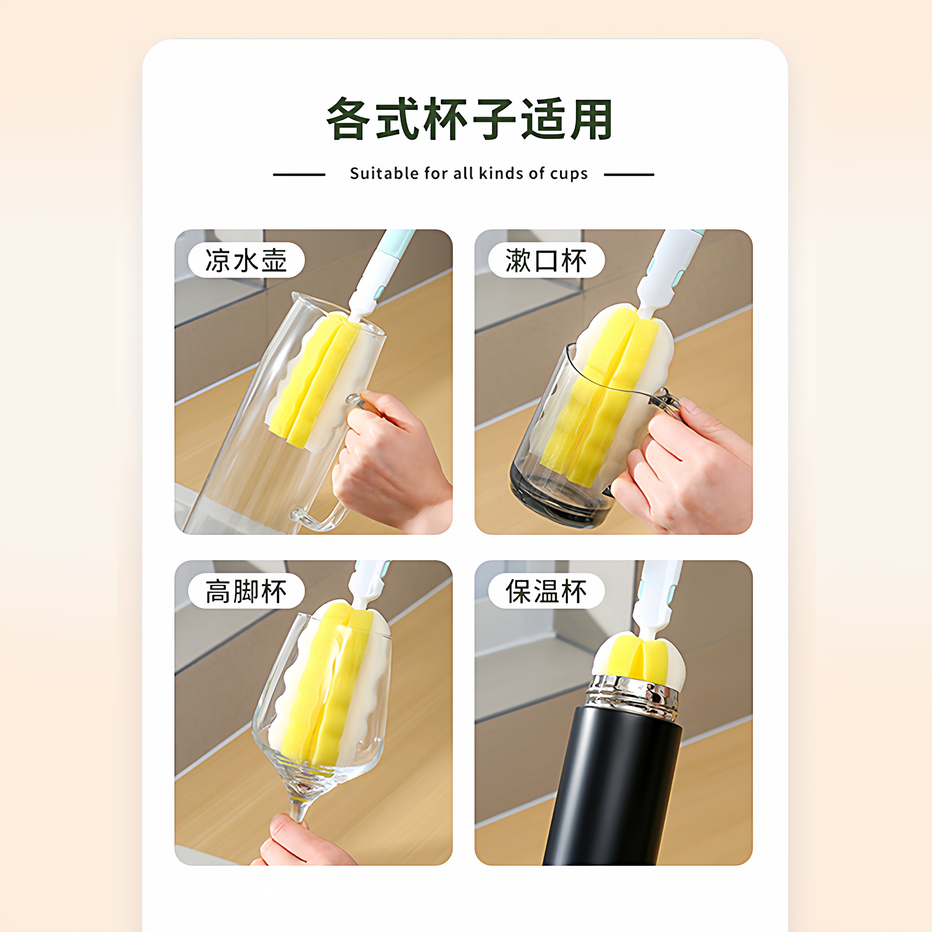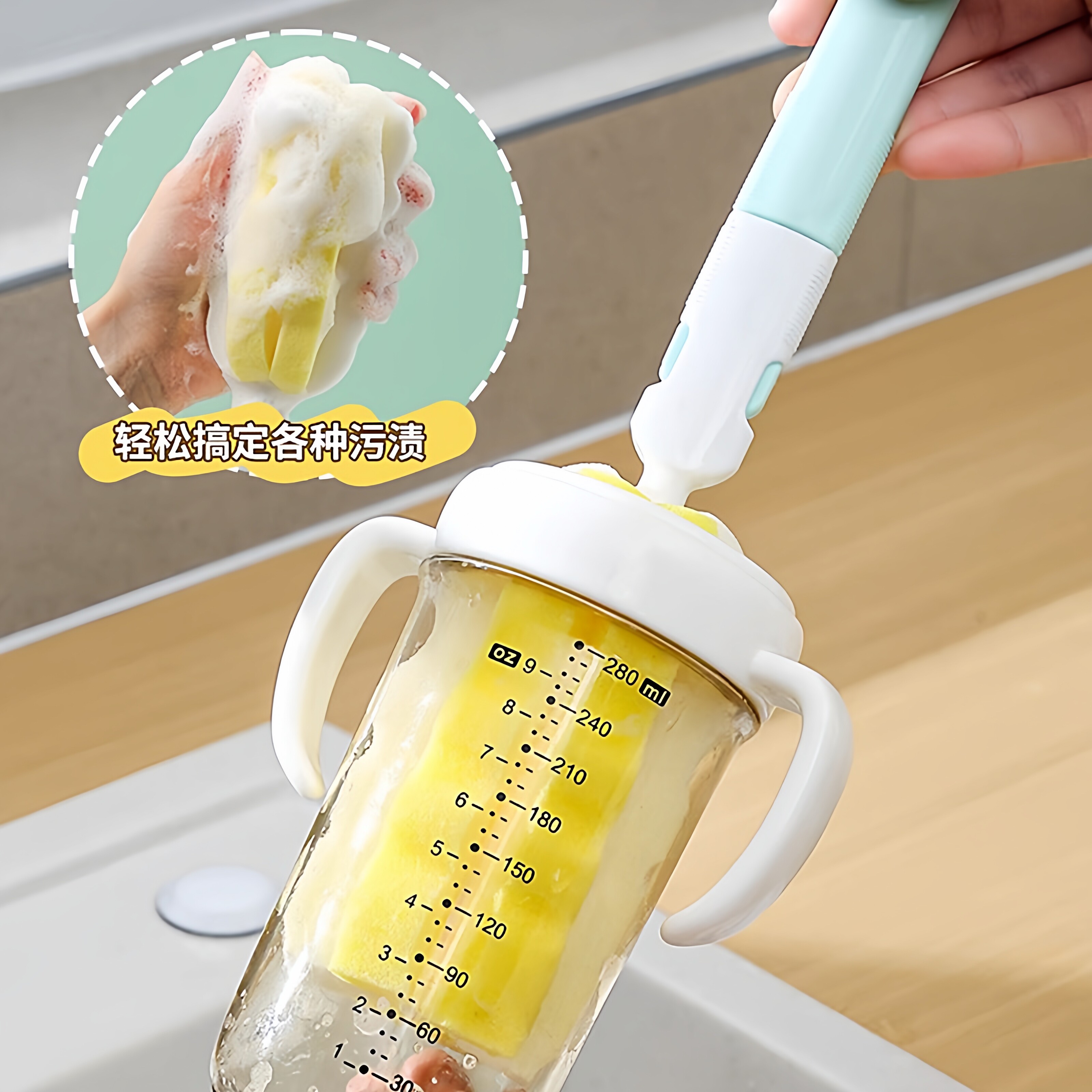 📚 长柄洗杯刷杯子工具家用清洁洗杯子孕婴可用优质大头海绵奶瓶刷子