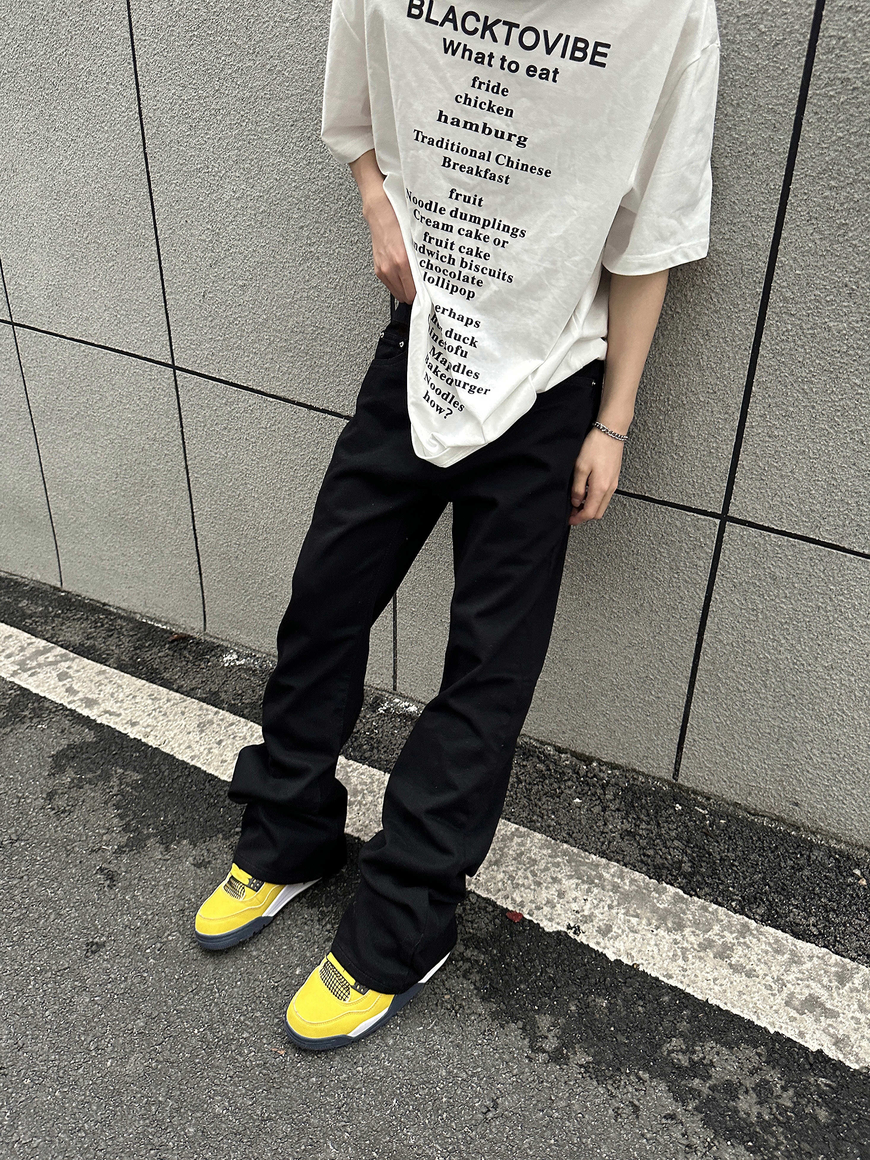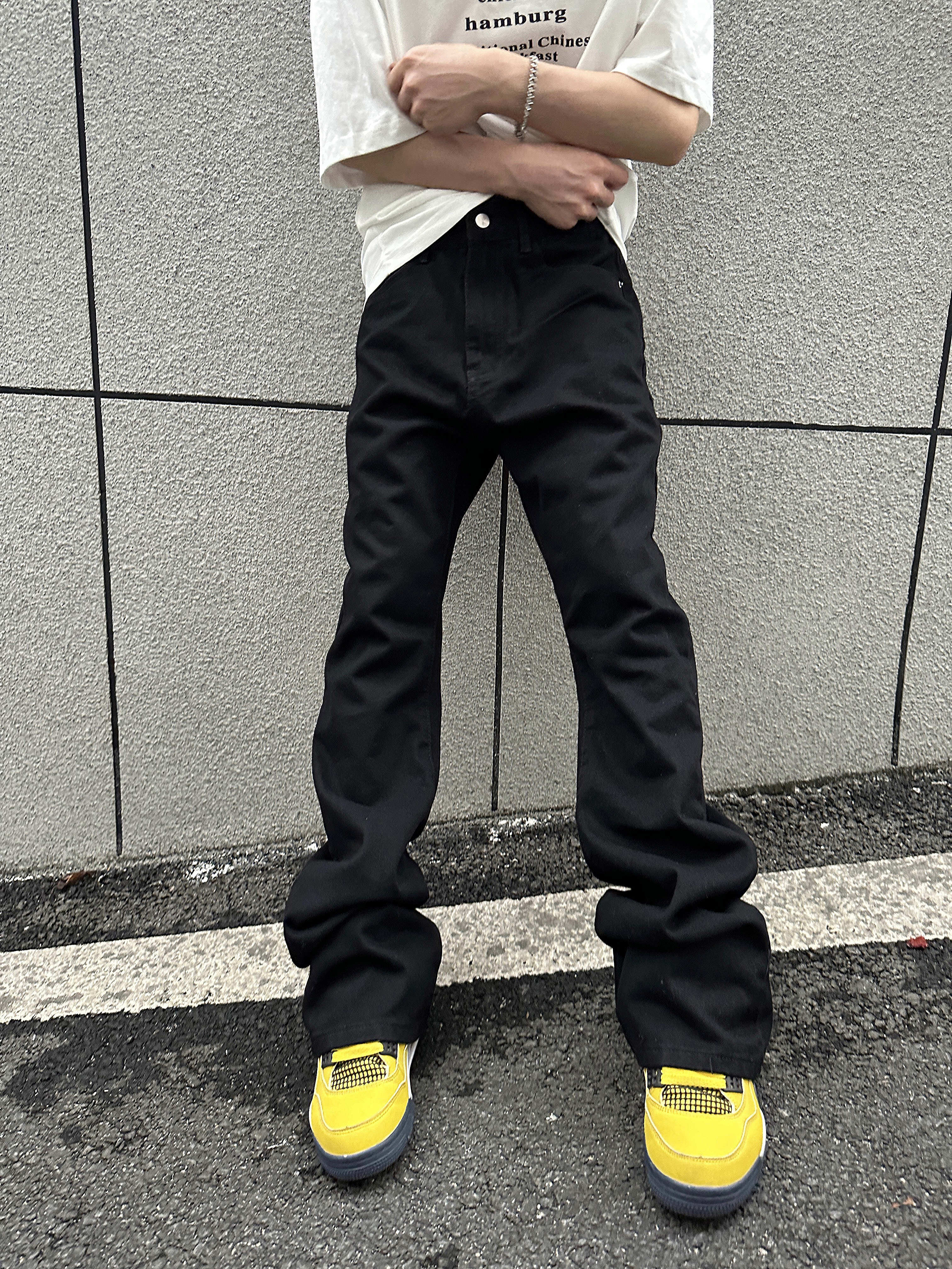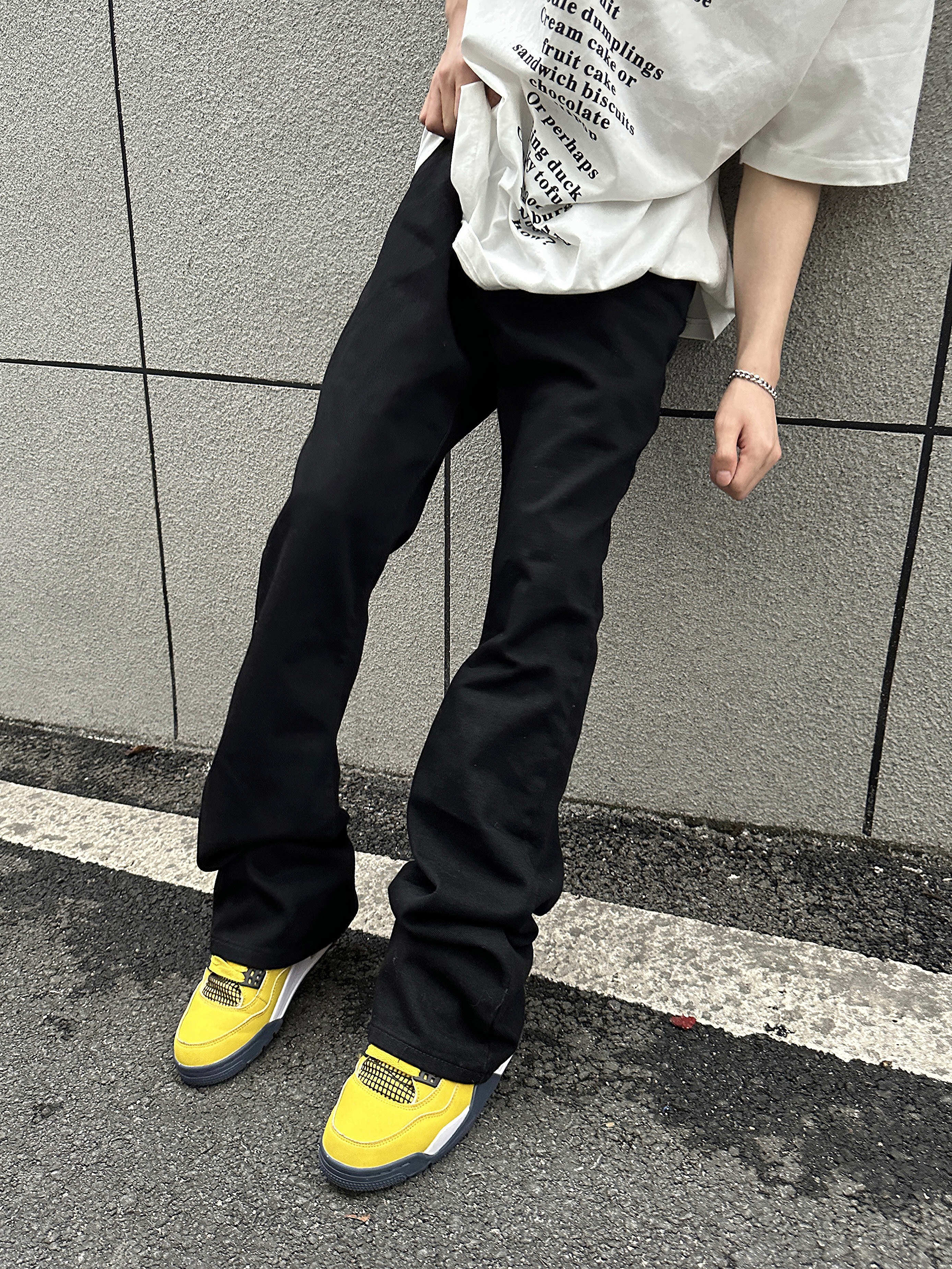 📚 F383 2026AW国潮原创黑色微喇牛仔裤男女美式复古弯刀显瘦裤子