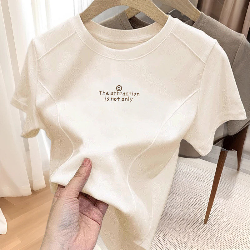 📚 纯棉正肩纯白色短袖t恤女夏季圆领弧形下摆修身收腰纯欲鱼骨上衣