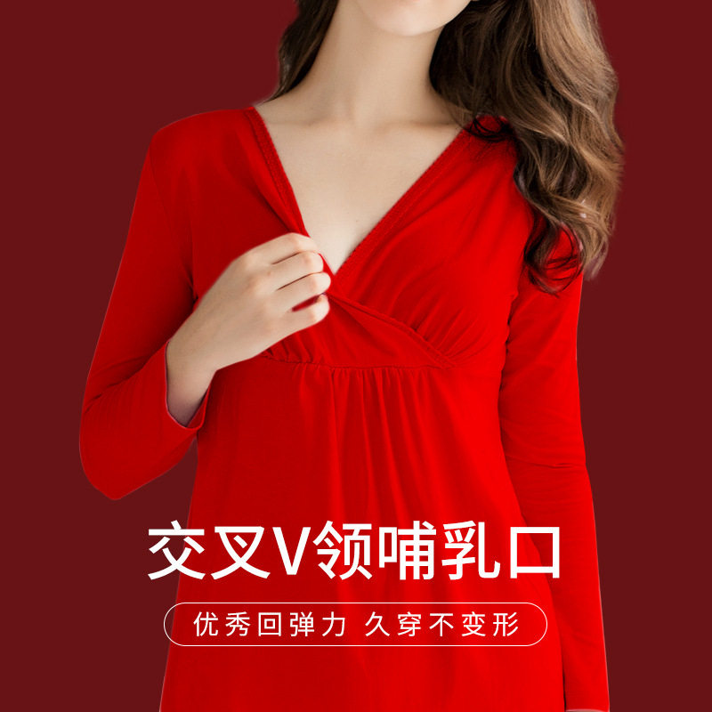 📚 本命年大红色结婚孕妇秋衣上衣薄款孕期保暖哺乳女款打底单件孕期