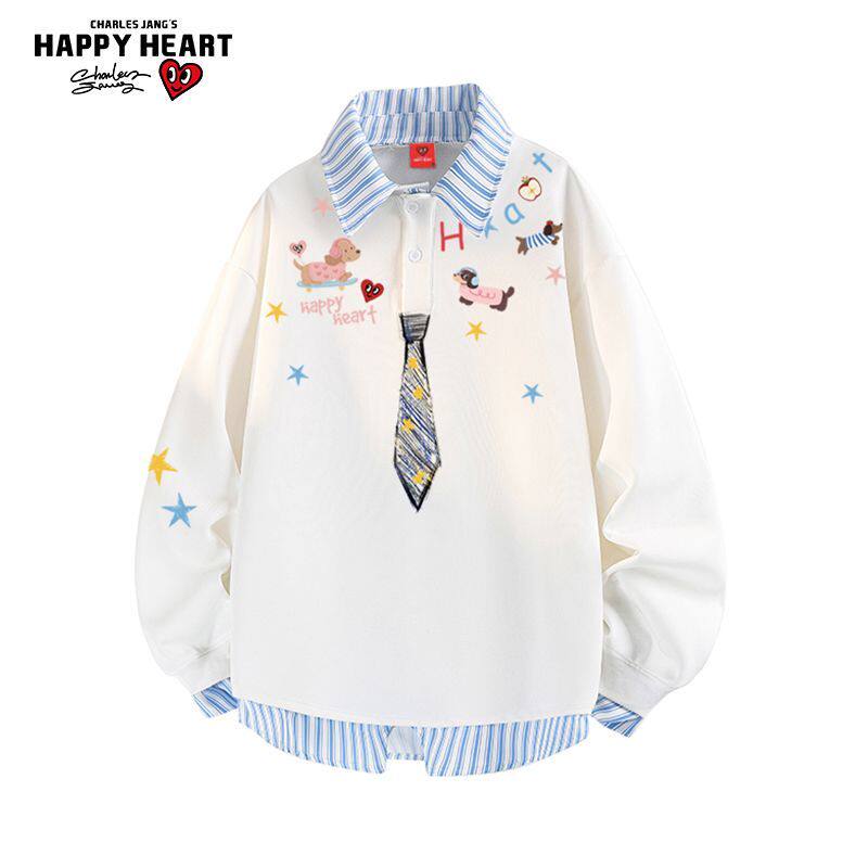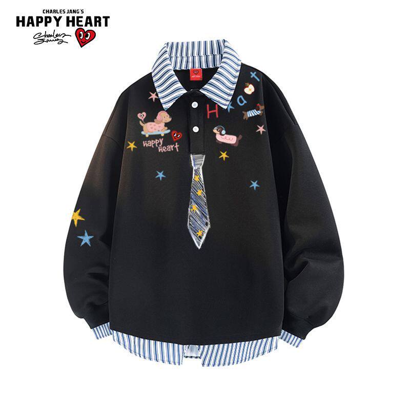 📚 查尔斯桃心涂鸦领带衬衫领卫衣男女春秋季新款宽松休闲百搭衣服潮