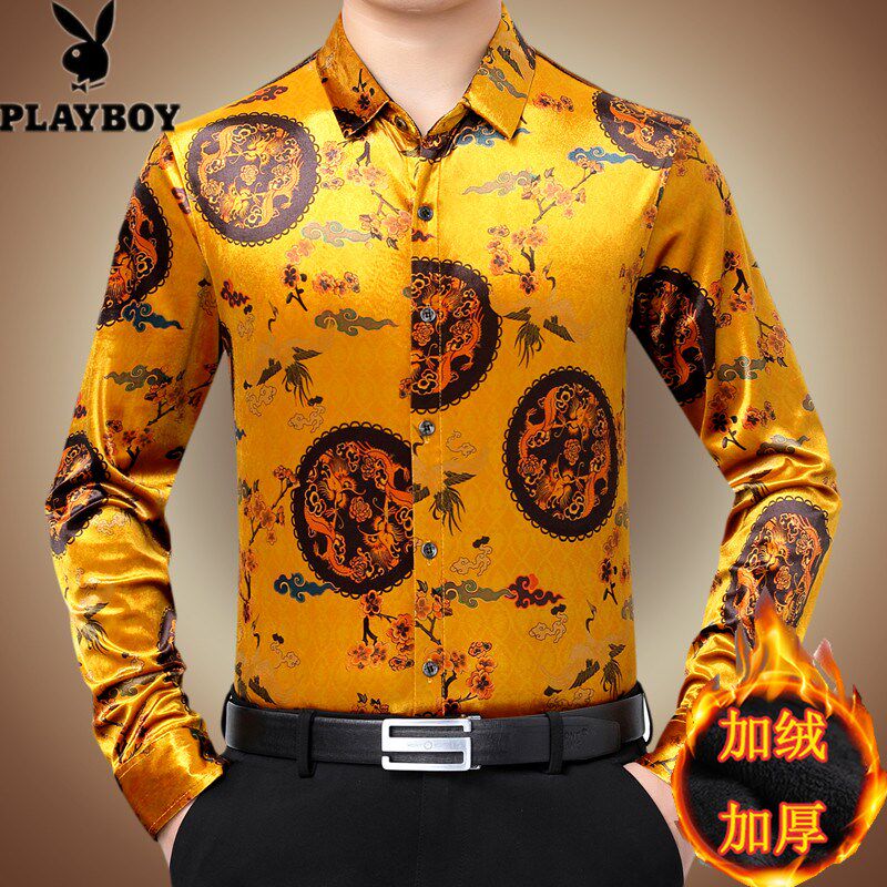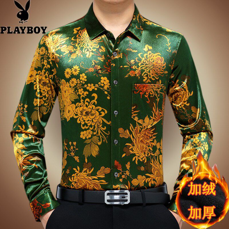 📚 2024加绒加厚花衬衫男冬季一体绒保暖长袖印花衬衣休闲中年爸爸装