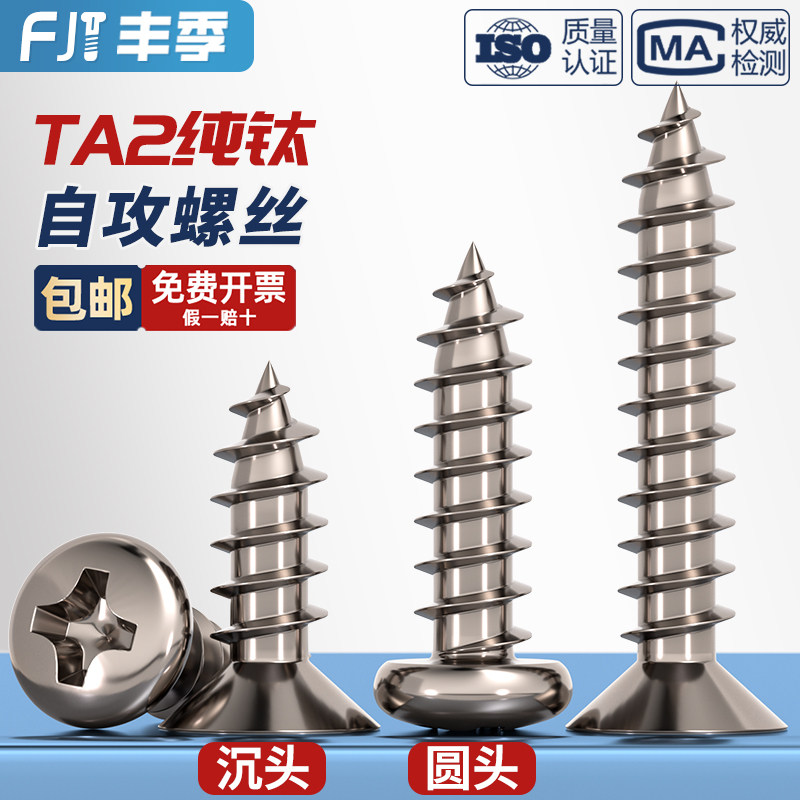 📚 国标TA2纯钛盘头伞头沉头大扁头平头圆头十字自攻螺丝钉M3M4M5mm