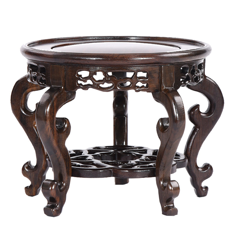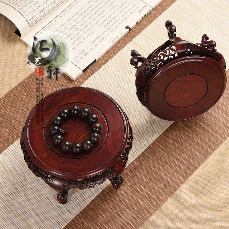 📚 紫光檀实木大红酸枝加高圆盆景花瓶海棠几佛像铜器奇石摆件木托架