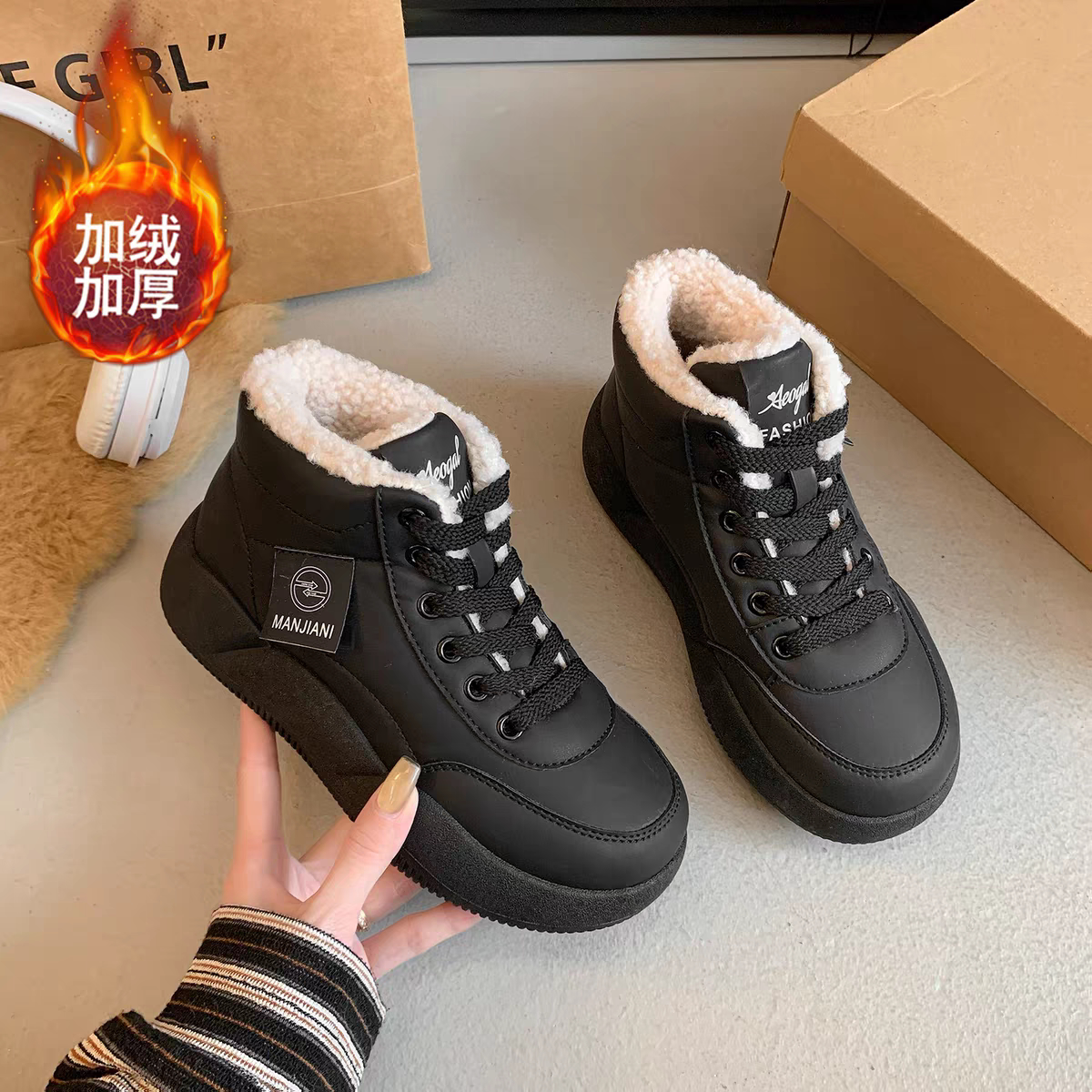 📚 黑色二棉鞋女冬季加绒加厚保暖防水防滑后厨房工作鞋百搭运动鞋子