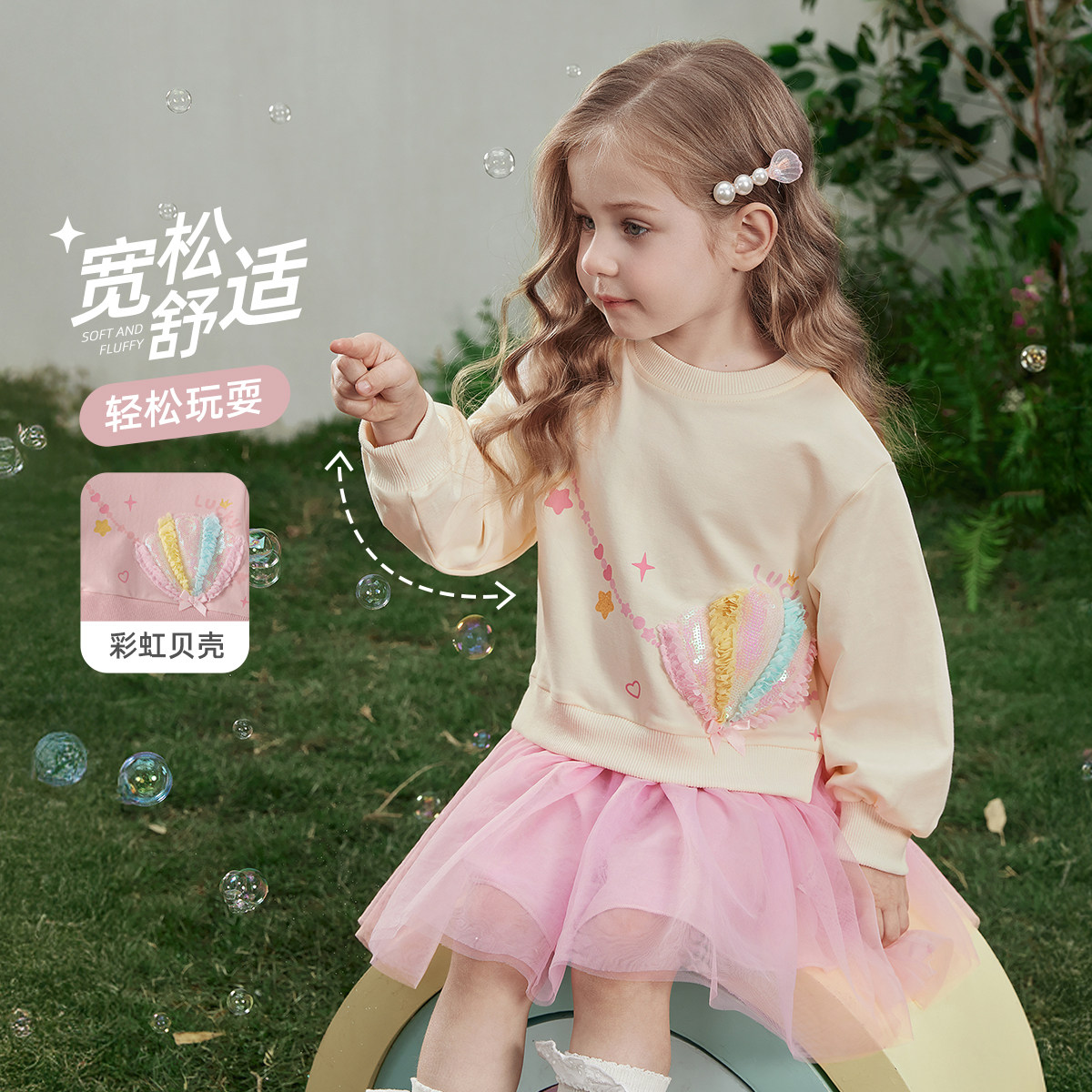 📚 [7A抑菌]女童连衣裙春季儿童圆领卫衣裙假两件拼接纱裙女宝宝裙子