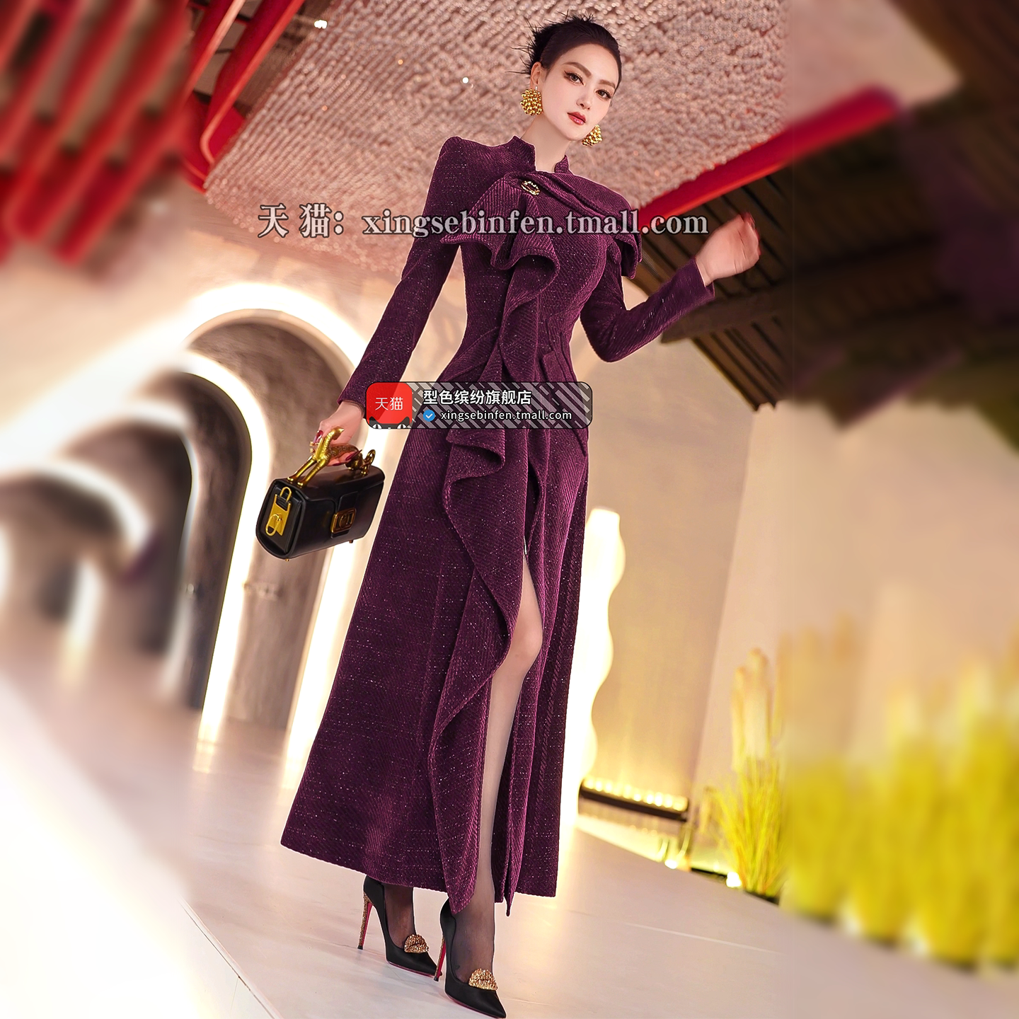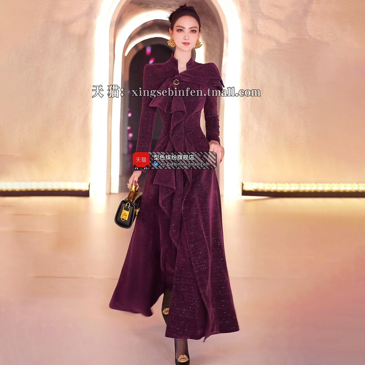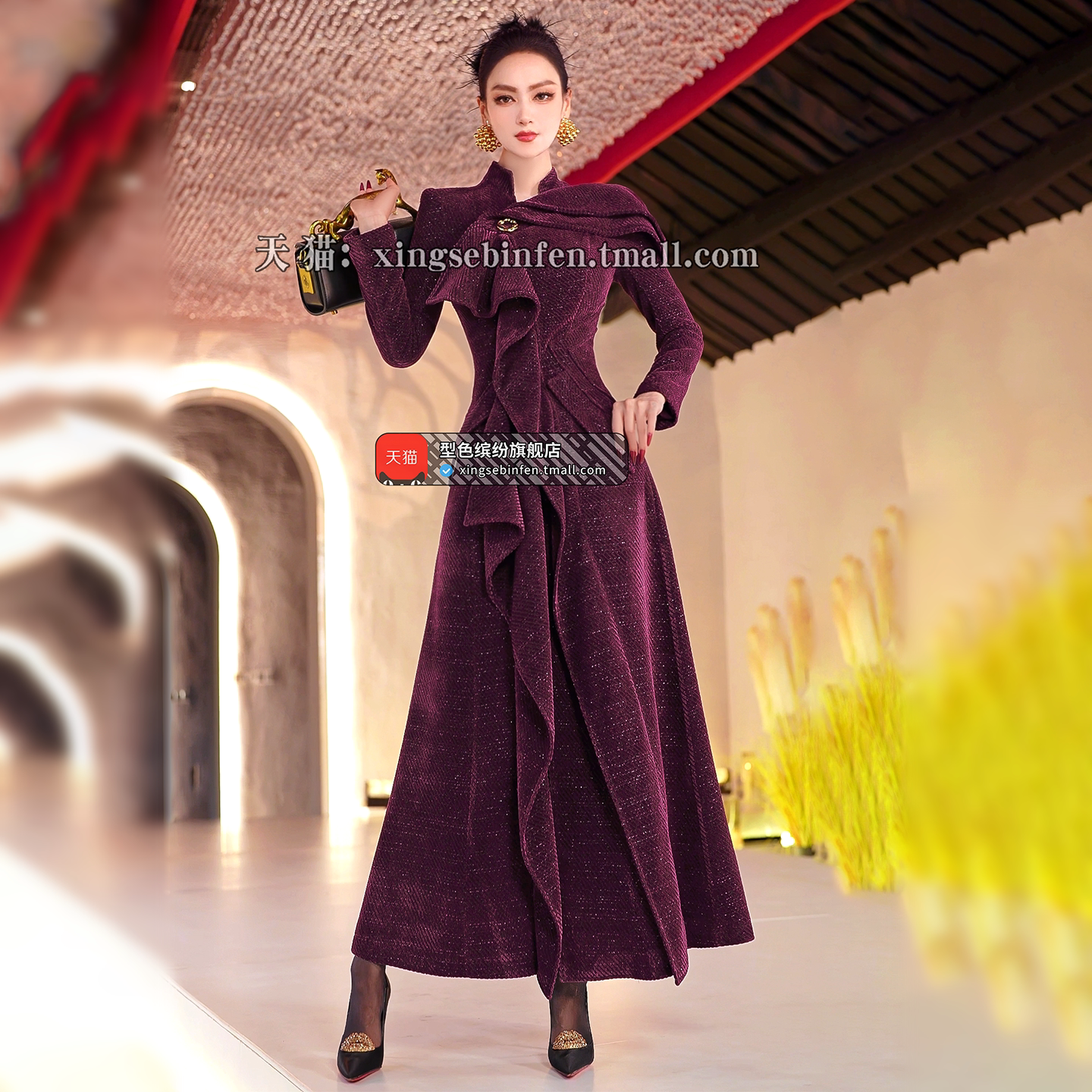 📚 秋冬女装荷叶边加厚中长款大衣2025新款时尚女神范大摆收腰外套