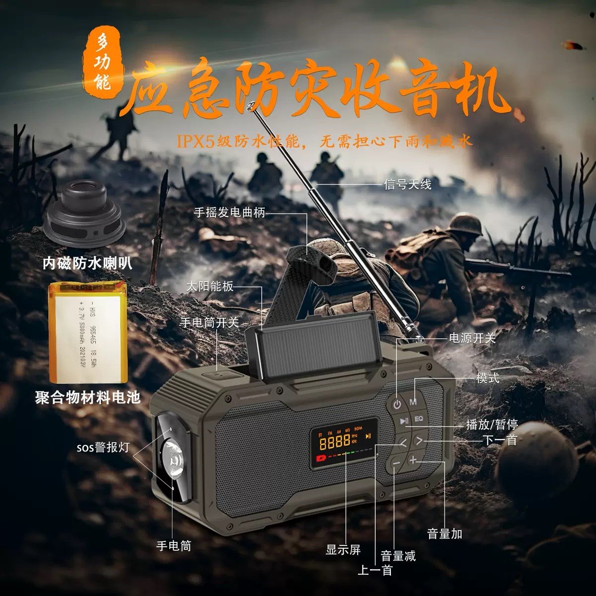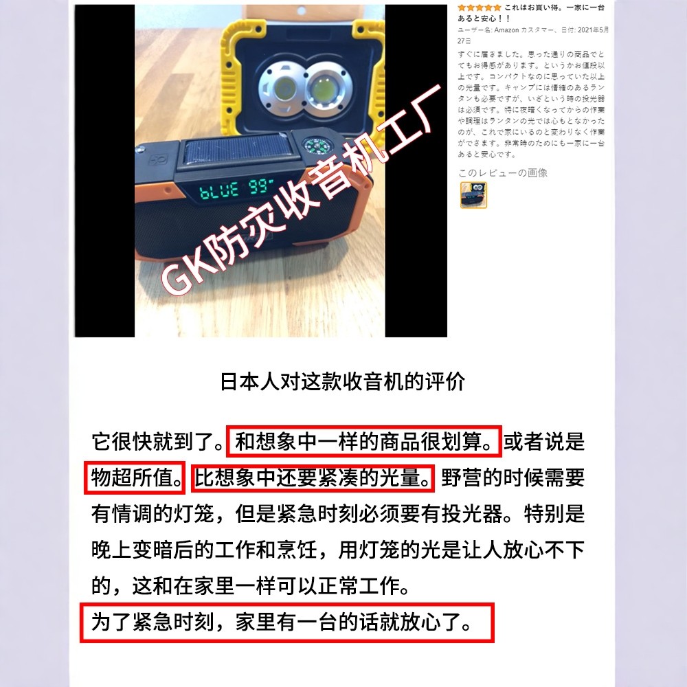 📚 出口日本款照明灯应急多功能手摇发电收音机末日防灾难战备手电筒
