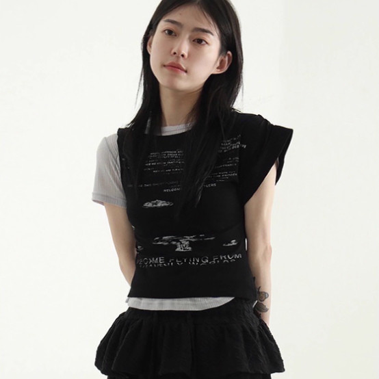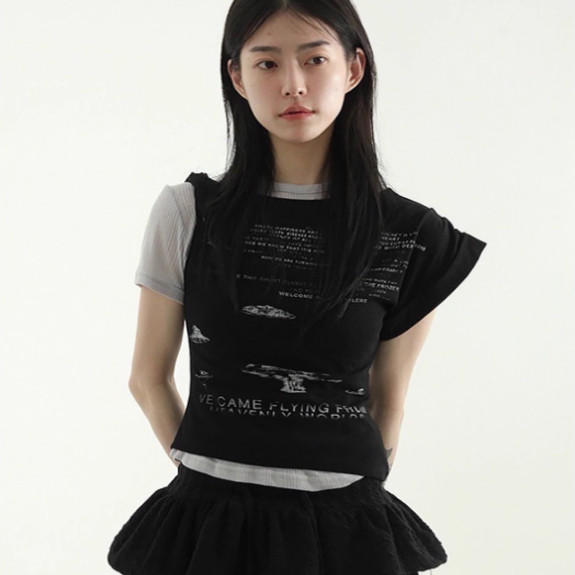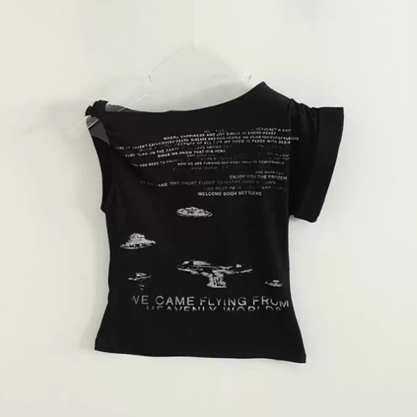 📚 韩国代购25S/S unbal shoulder lettering half tee 字母短袖T恤