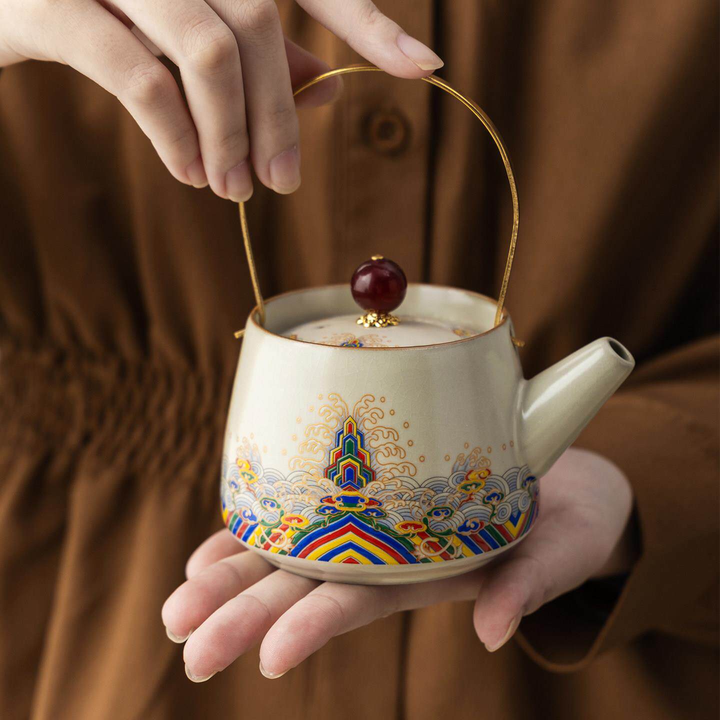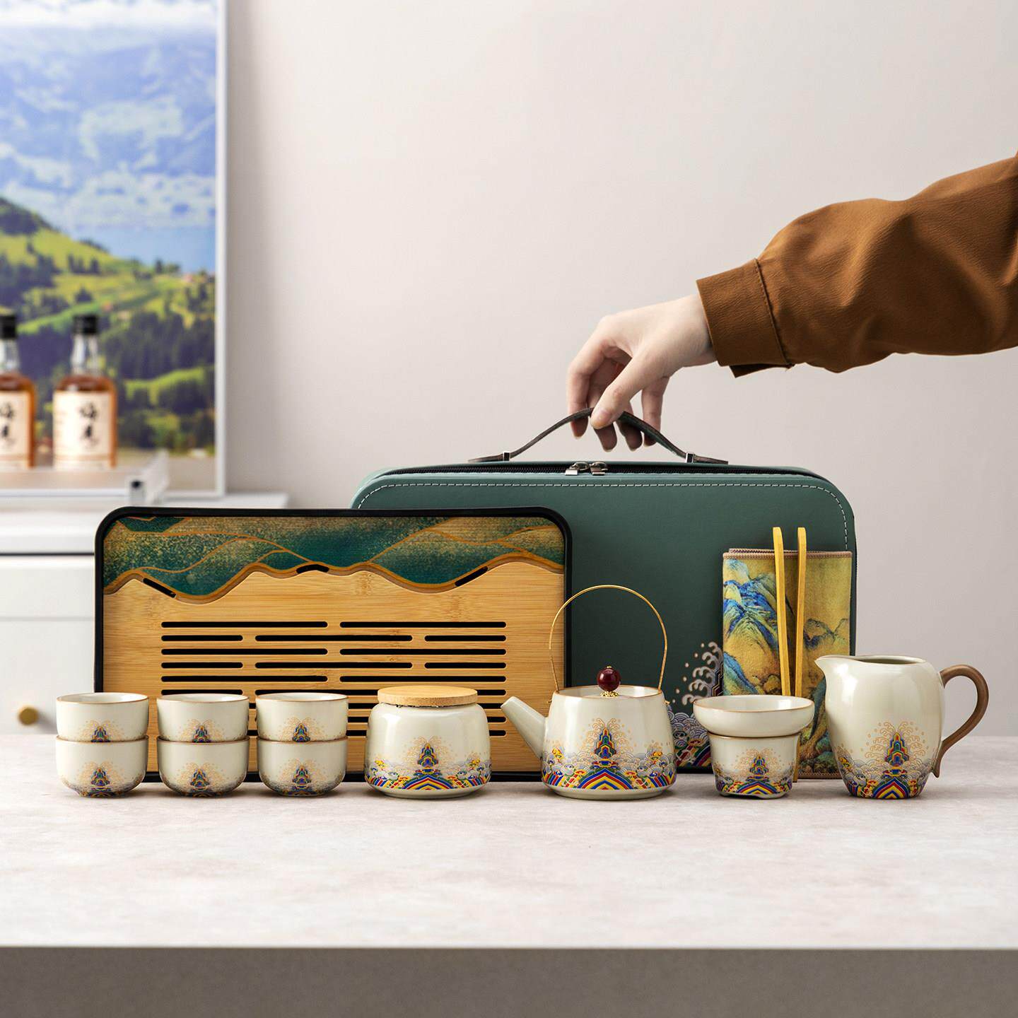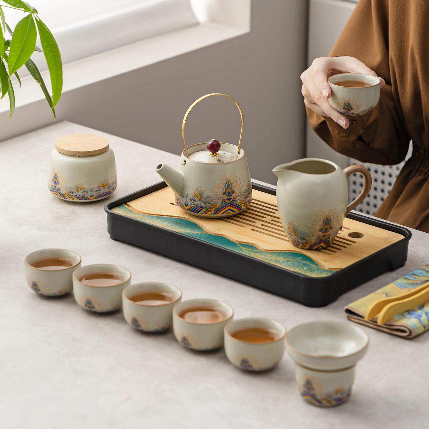 📚 汝窑旅行陶瓷功夫茶具套装家用便携式户外露营泡茶壶盖碗茶杯茶盘