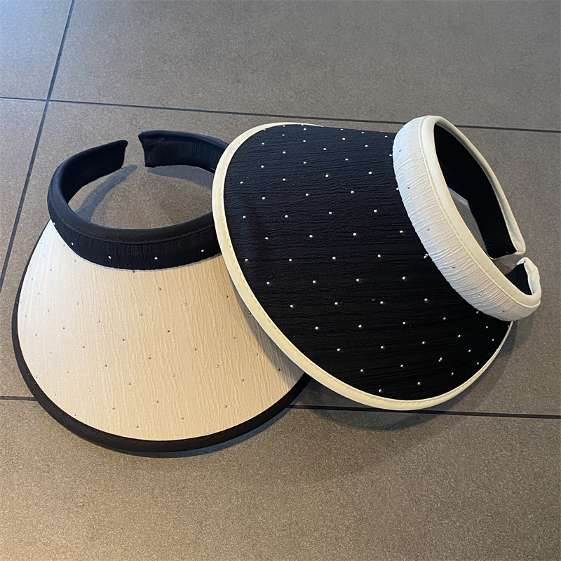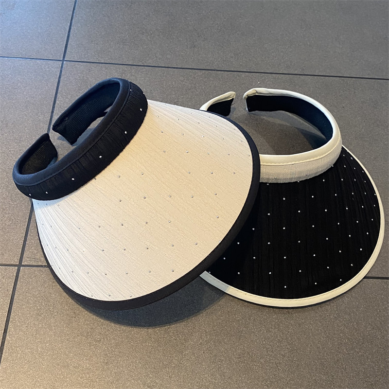 📚 新款女夏季闪亮水钻空顶遮阳帽百搭优雅出游发箍帽防紫外线防晒帽