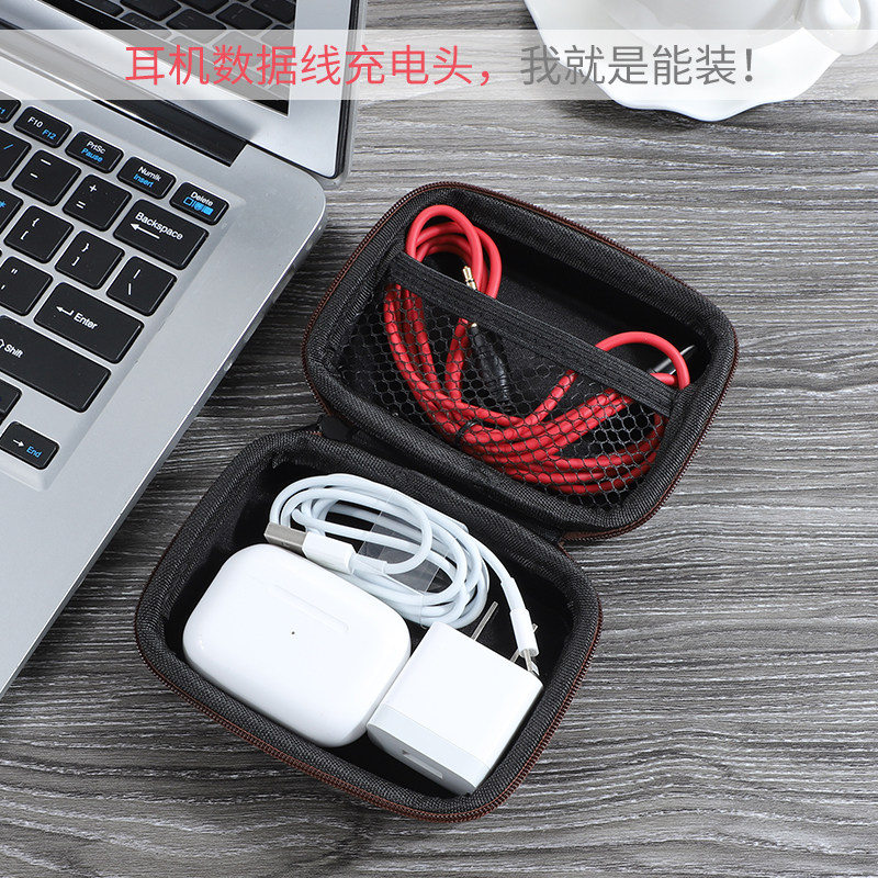 📚 手机充电器保护套适用华为充电数据线收纳包苹果充电器收纳包 皮革复古数据线充电头收纳盒便携硬壳