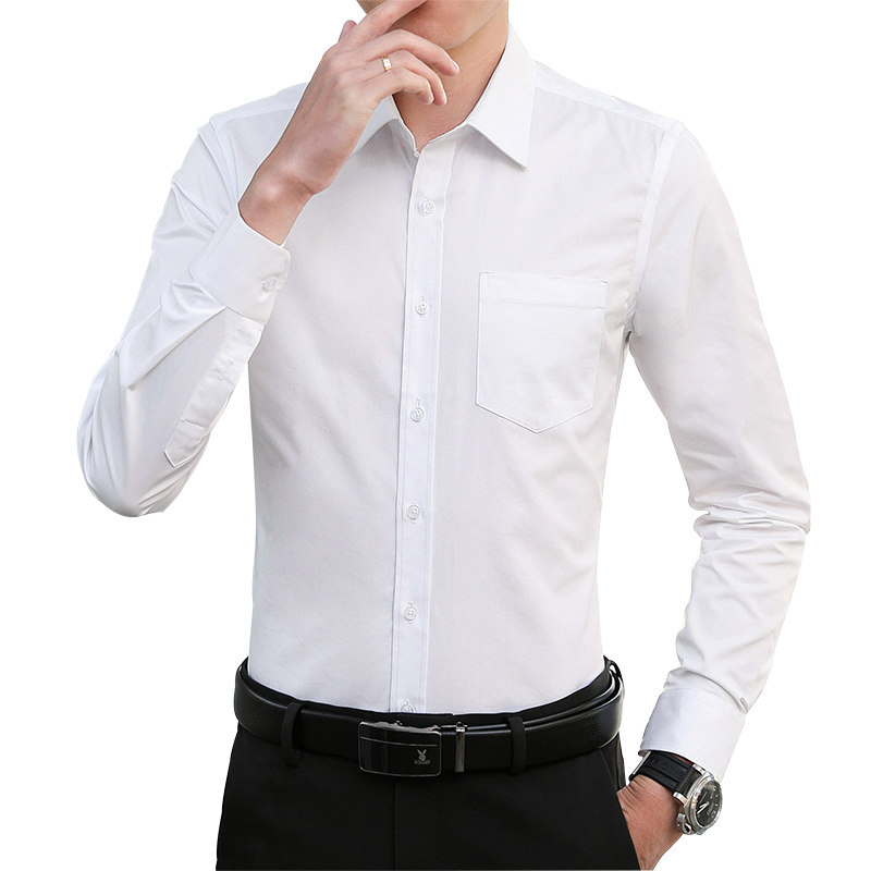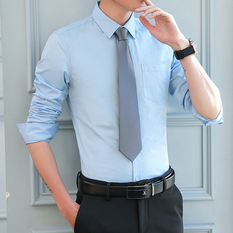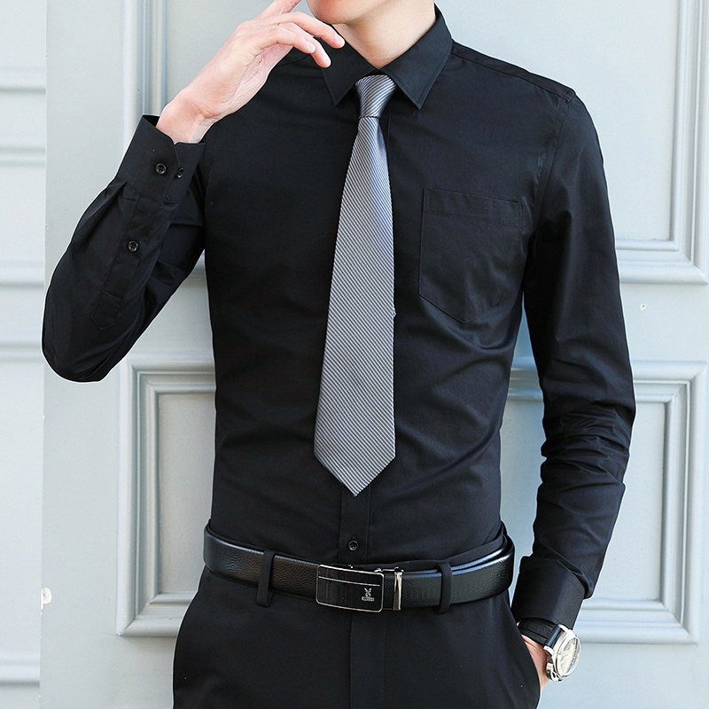 📚 秋季白衬衫衣男长袖韩版防t皱工作服黑村杉商务帅气口袋正装ls衬