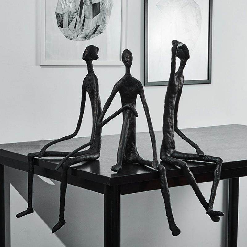 📚 现代简约黑色抽象人像雕塑摆件样板房售楼处玄关坐姿人物软装饰品