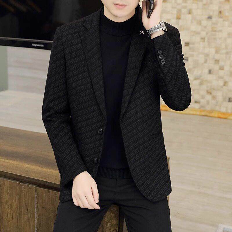 📚 高级感休闲西装外套男春秋款韩版修身男士时尚潮牌黑色小西服短款