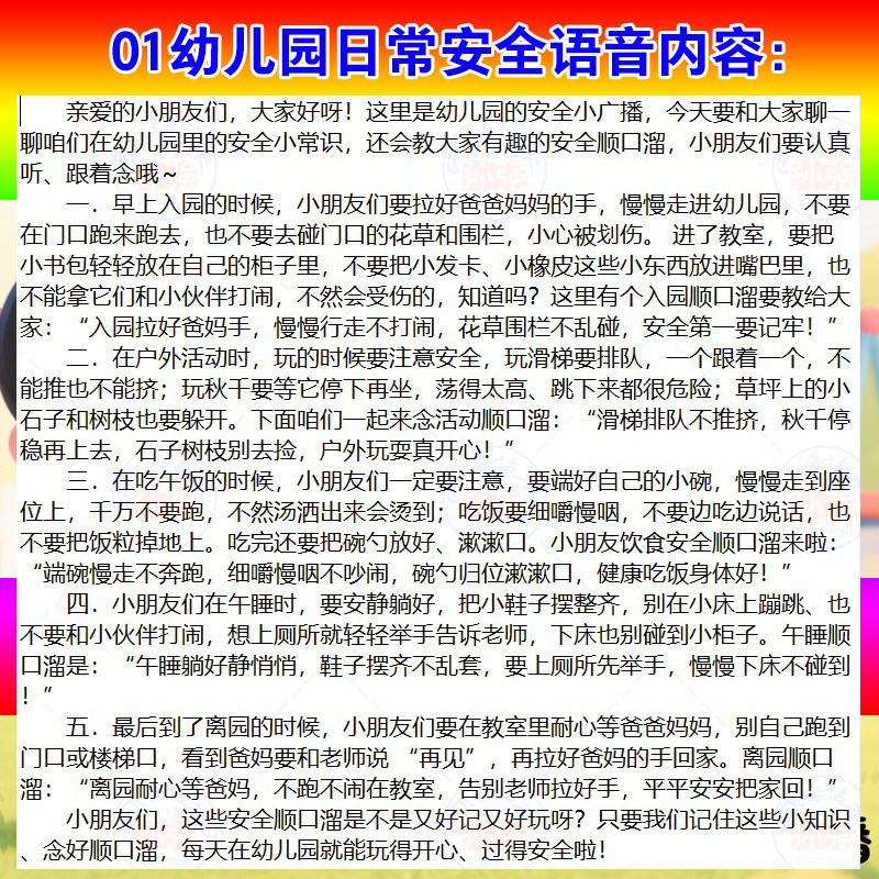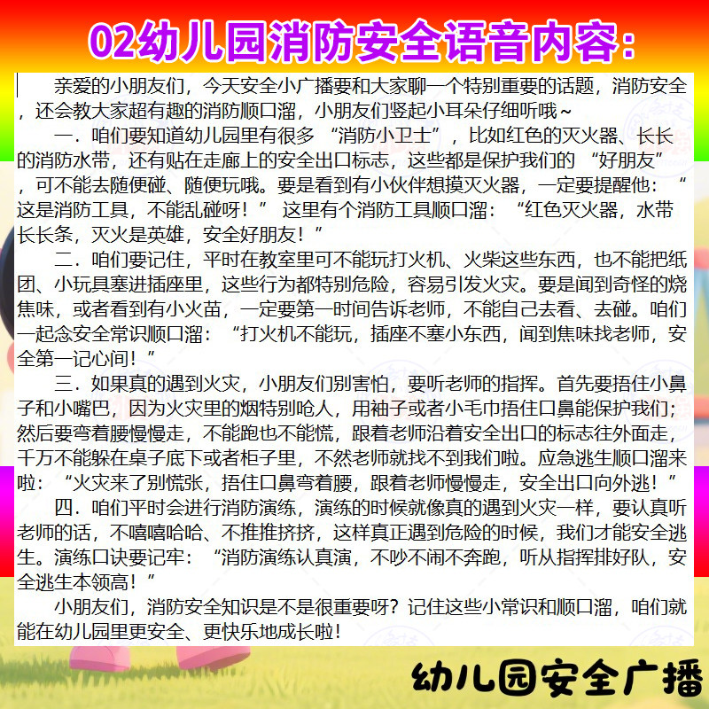📚 幼儿园安全教育内容mp3语音广播消防知识小常识注意事项高清女声
