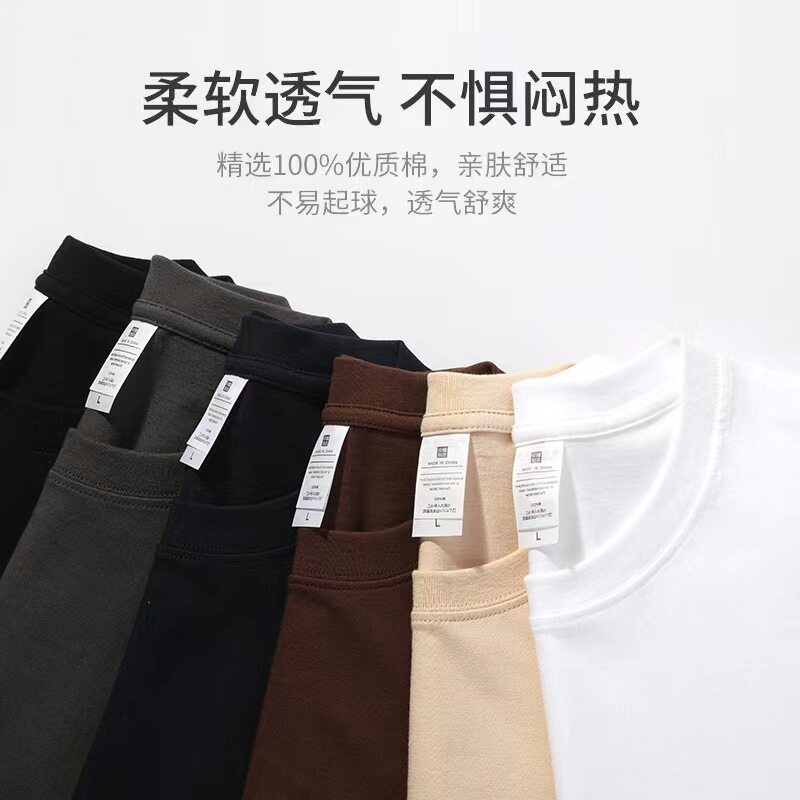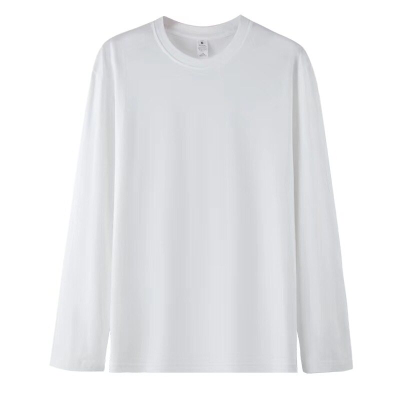 📚 220克男式纯棉新疆精梳棉潮牌纯色男女宽松圆领长袖t恤衣服打底衫