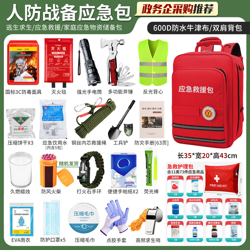 📚 家庭应急包全套物资人防战备救援暴雨防汛地震逃生消防灾避难装备