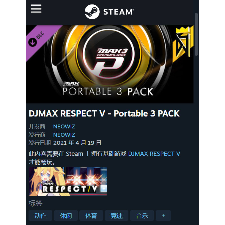 📚 Steam正版 DJMAX RESPECT 致敬 V Portable 3 Pack DLC 激活码CDK
