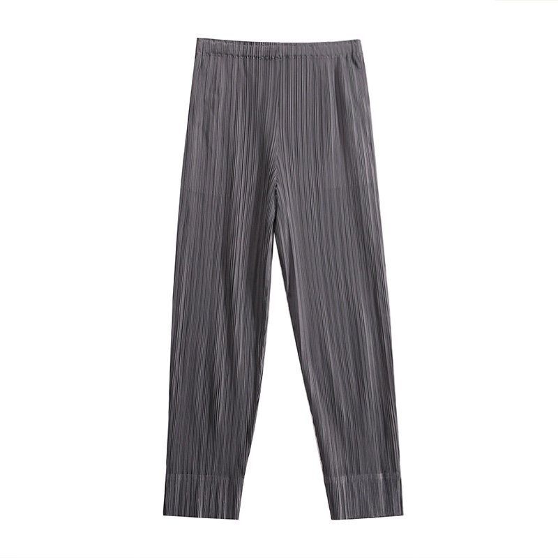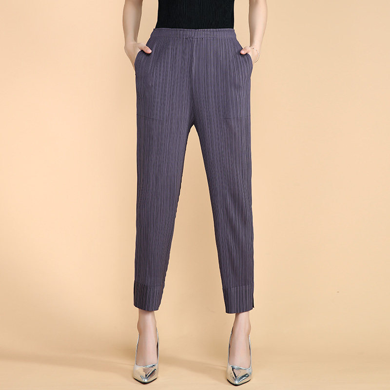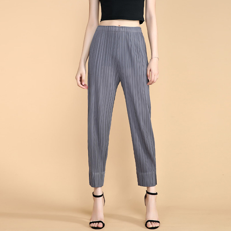 📚 压褶褶皱休闲女裤春夏新款宽松大码百褶铅笔裤九分裤直筒哈伦裤潮