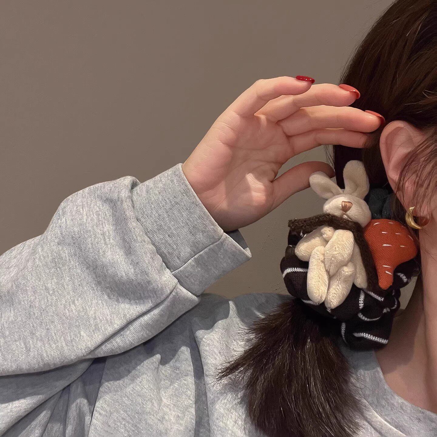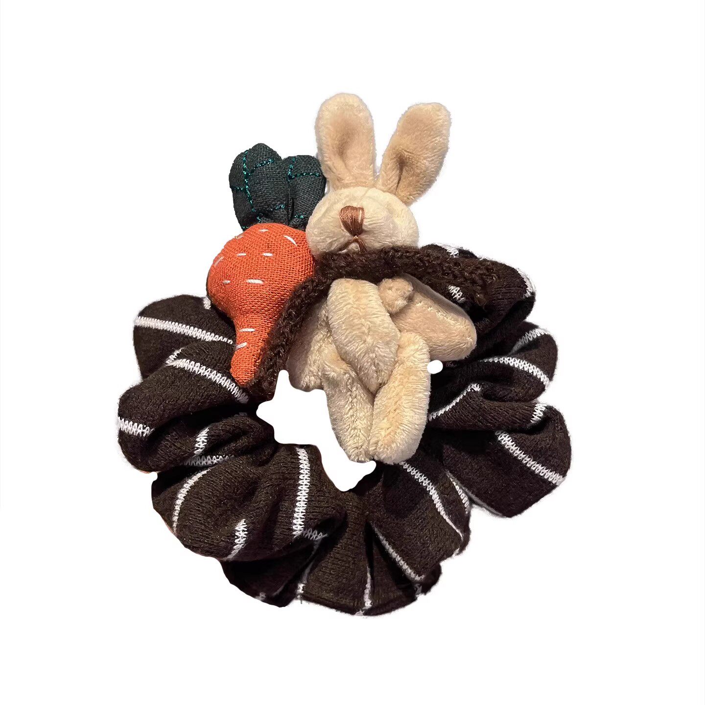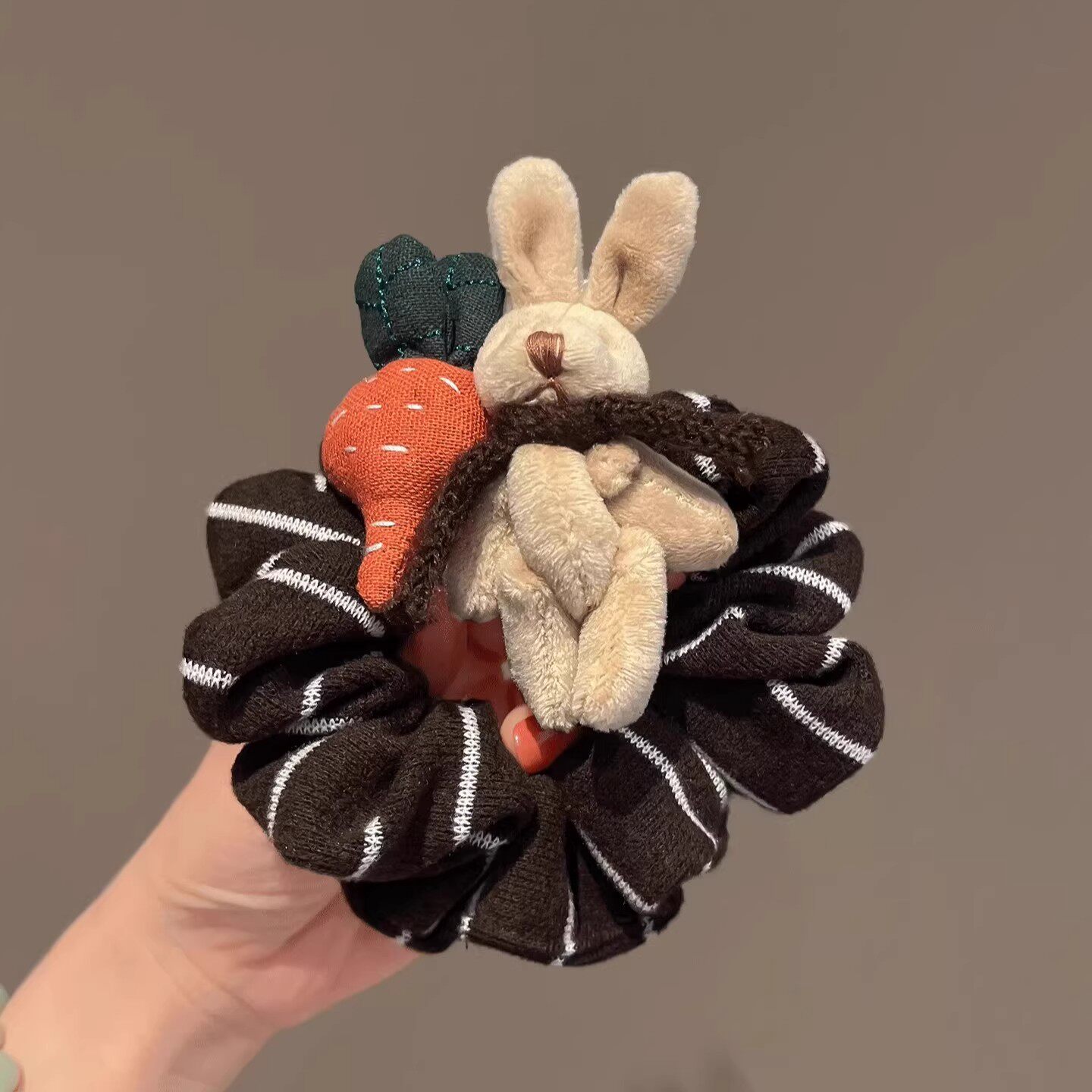 📚 毛绒萝卜兔棕色针织布艺发圈秋冬新款可爱百搭肠圈发绳扎马尾头绳