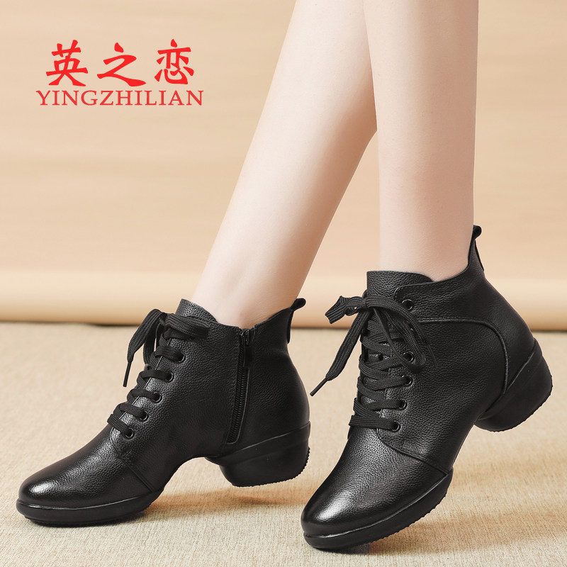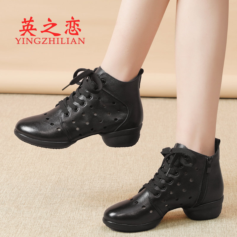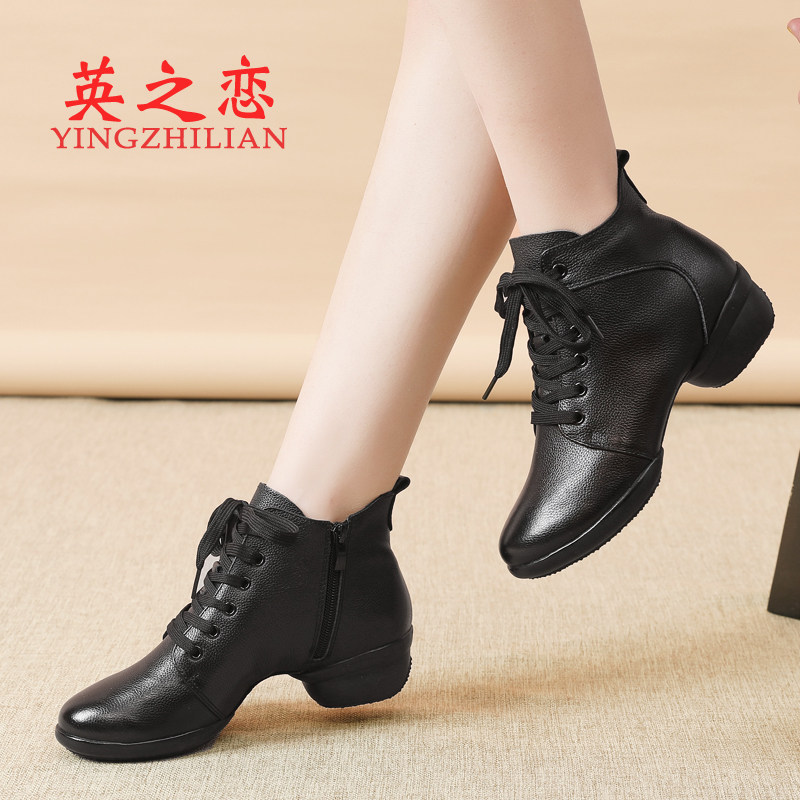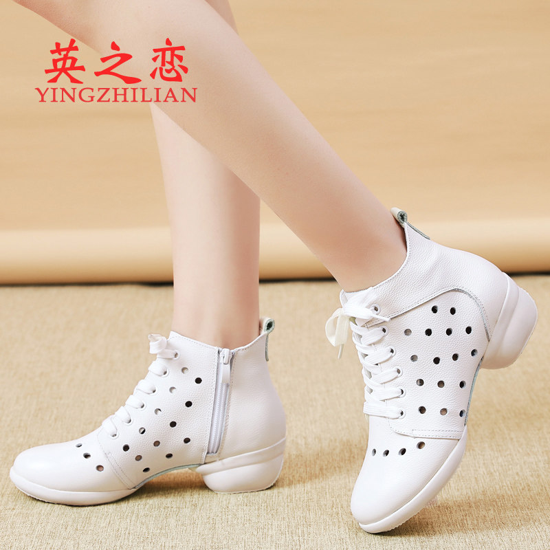 📚 英之恋春夏白色舞蹈鞋女真皮软底中跟水兵跳舞鞋女广场舞女鞋短靴