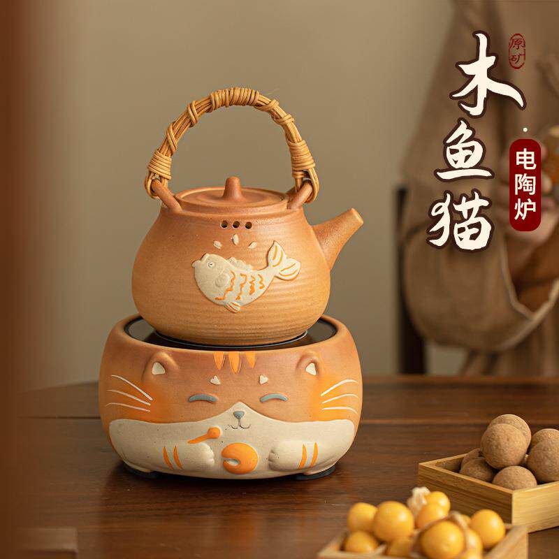 📚 木鱼猫电陶炉茶壶围炉煮茶套装家用室内煮茶暖茶茶具防烫提梁茶壶