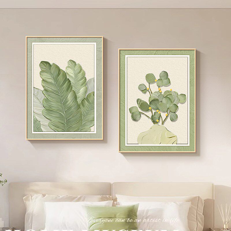 📚 家大业大卧室两联组合挂画奶油风绿植客厅餐厅壁画温馨床头装饰画