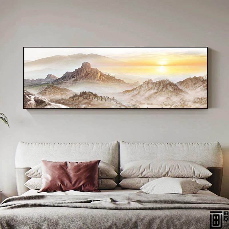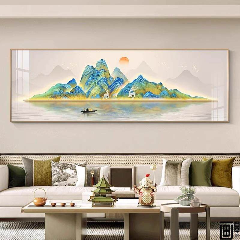 📚 新中式大背幅尺寸整幅金山生财背有靠沙山客TSV厅横挂画发景墙装