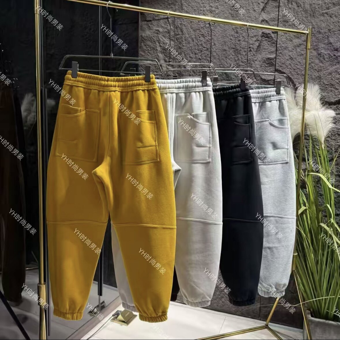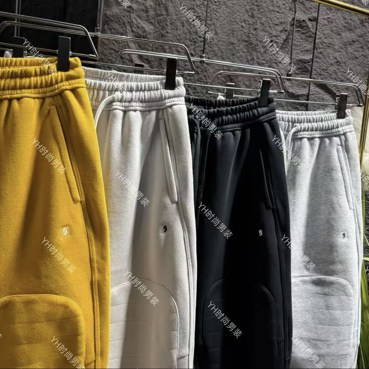 📚 冬季新款时尚潮流加厚拉绒刺绣弯刀束脚卫裤宽松休闲百搭男士长裤