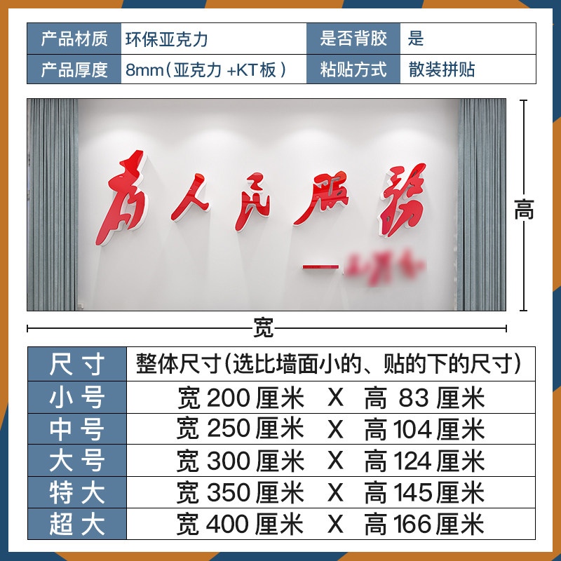 📚 为人民服务墙贴纸党支部宣传标语布置党建文化墙形象背景墙亚克力