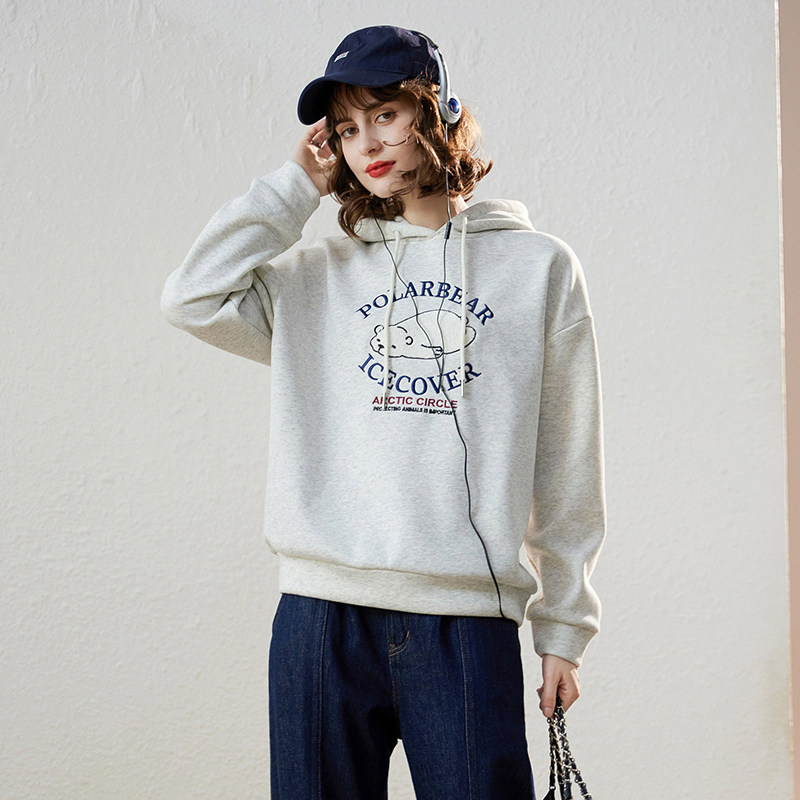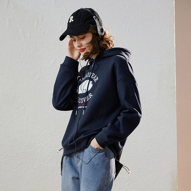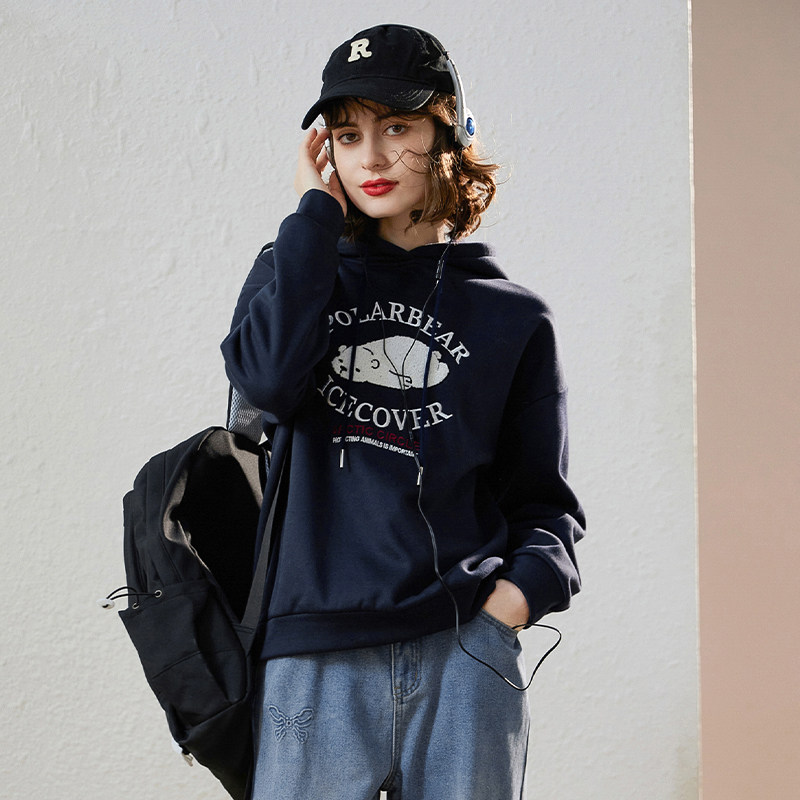 📚 白鹿语潮流连帽加绒加厚卫衣冬季个性毛巾绣花宽松长袖卫衣女