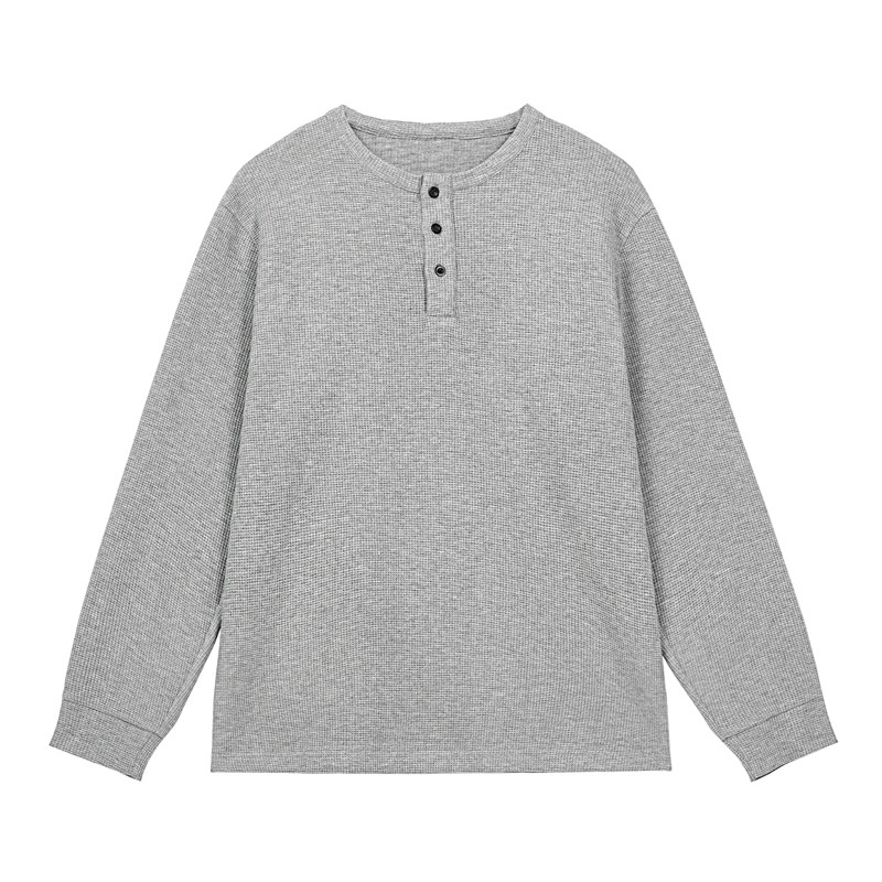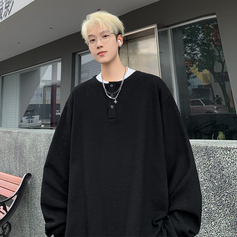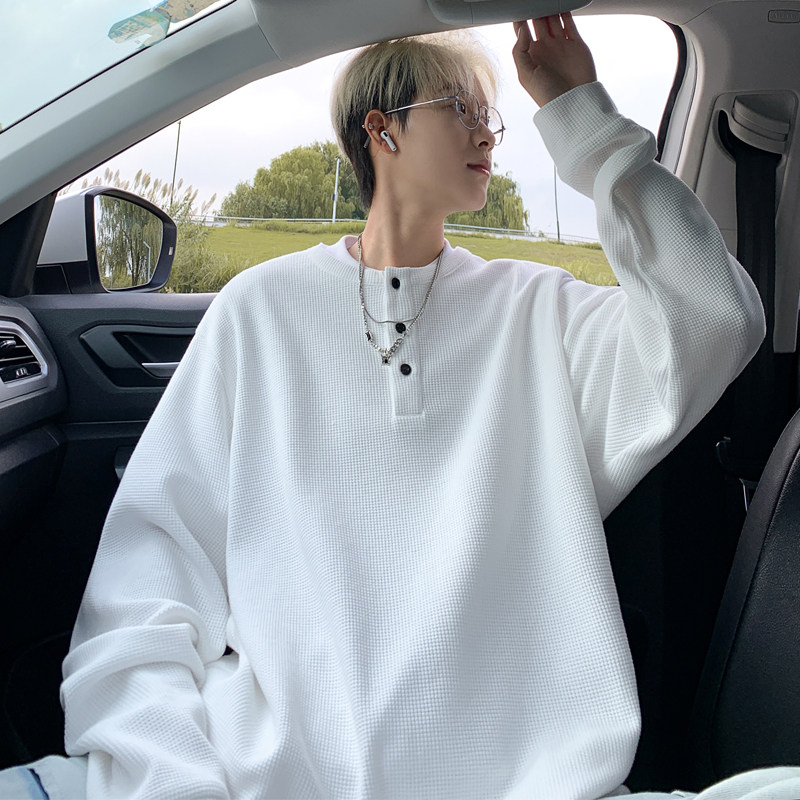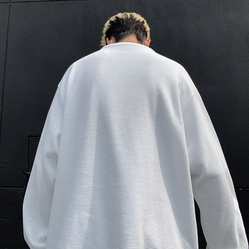 📚 华夫格长袖T恤男春秋季新款半开衫套头上衣oversize宽松舒适打底