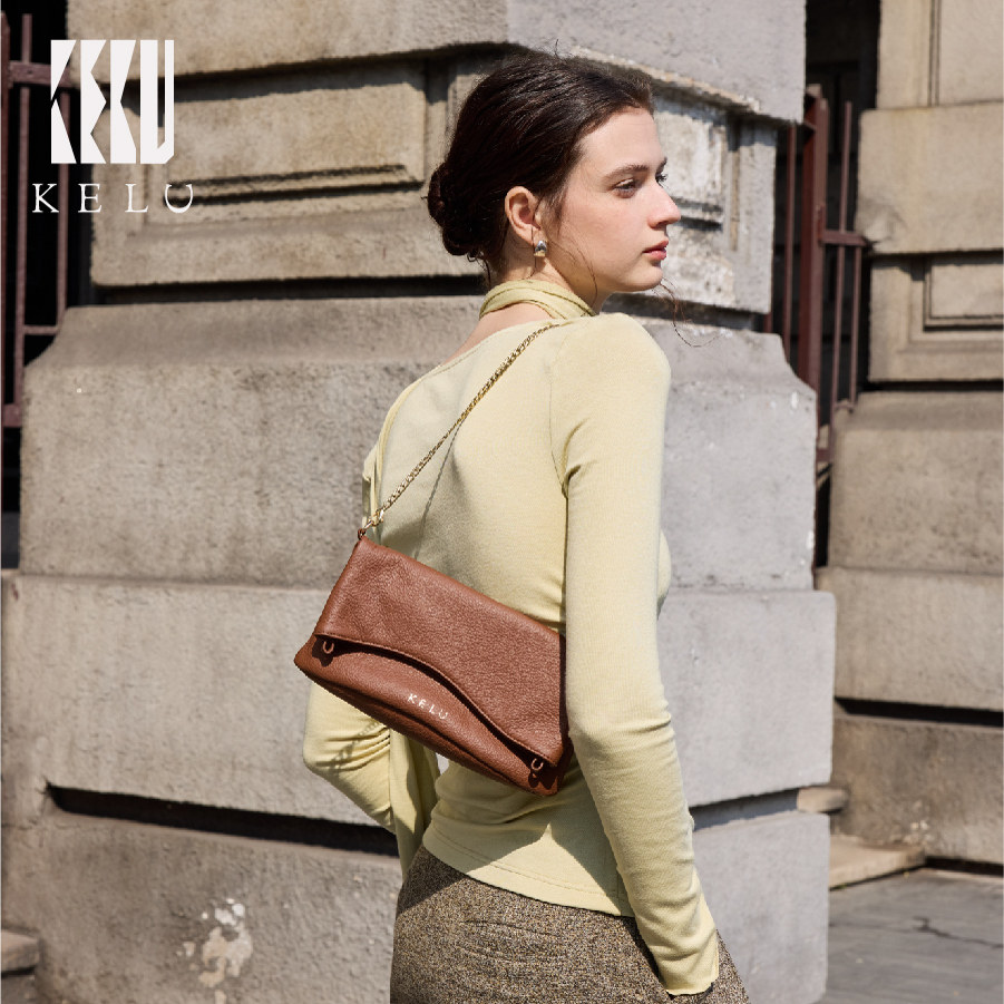 📚 KELU真皮腋下包单肩包链条包女包单肩斜挎真皮女包高级感腋下包包