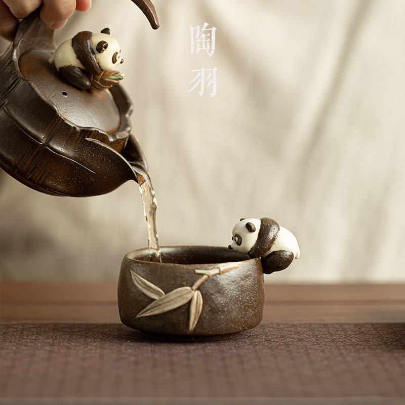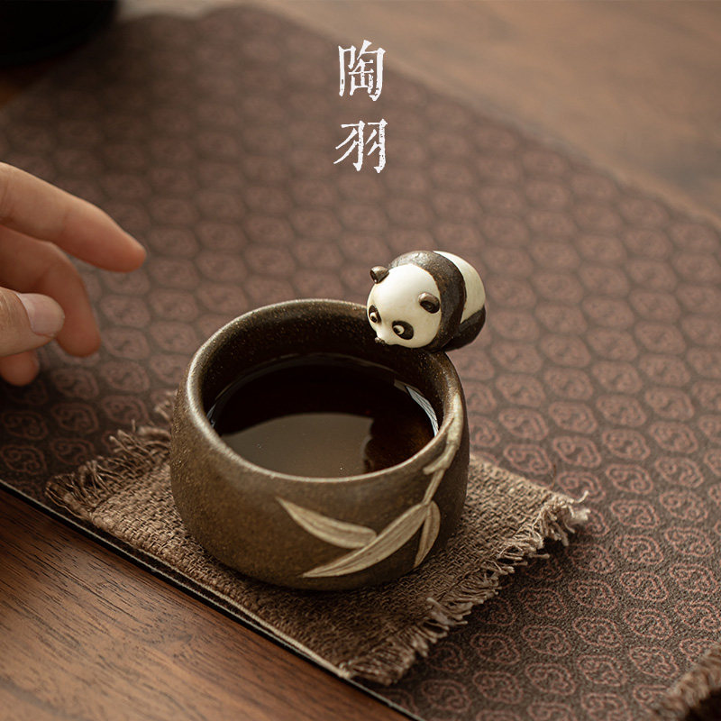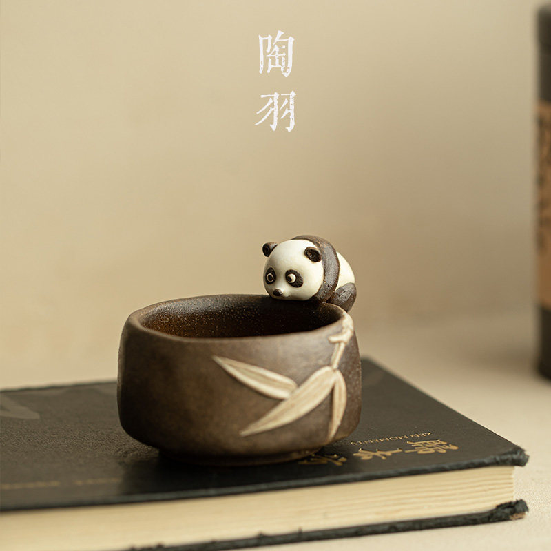 📚 柴烧竹叶熊猫探盏杯家用中式茶杯高档主人杯陶瓷个人专用品茗杯