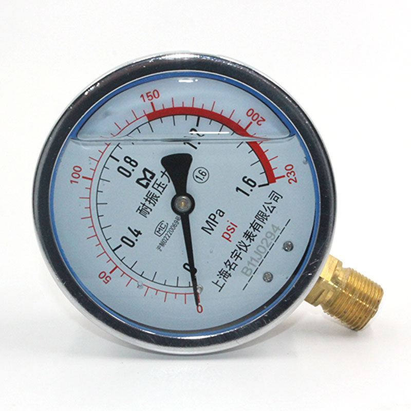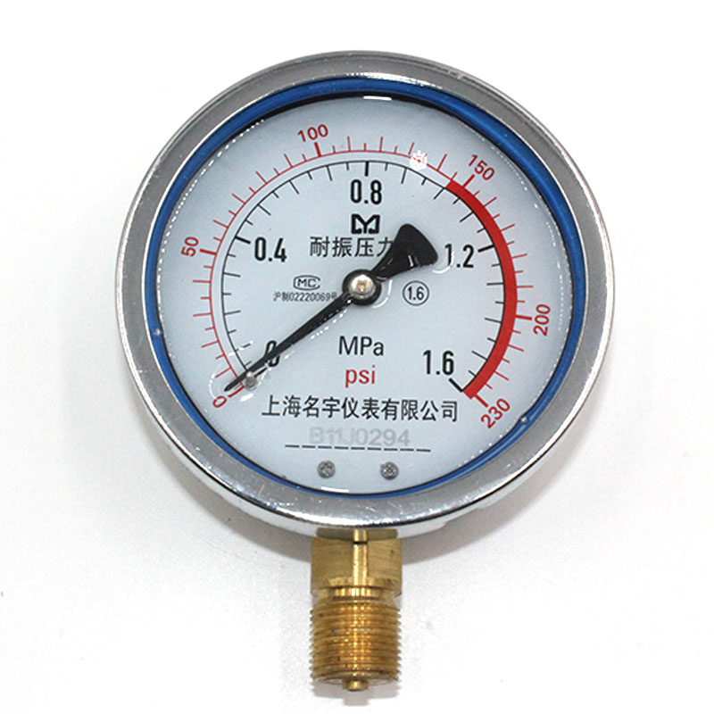 📚 上海名宇YN100耐震压力表0~1.6MPa气压水压力表液压力表20*1.5
