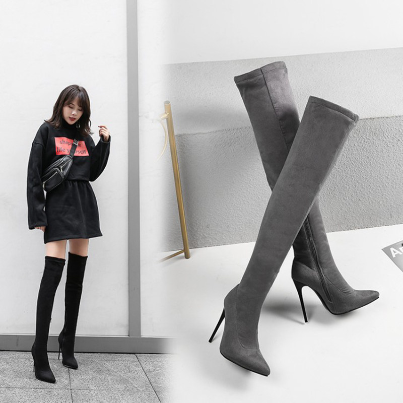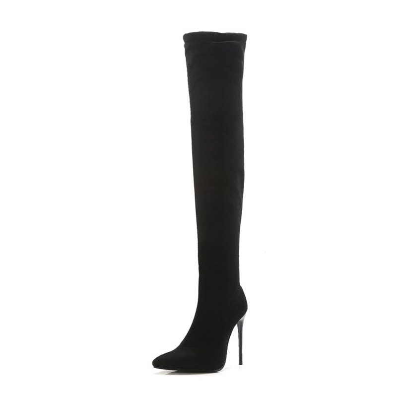 📚 黑色长靴12厘米尖头高跟过膝靴细高跟女靴大码女靴显瘦靴时尚长靴