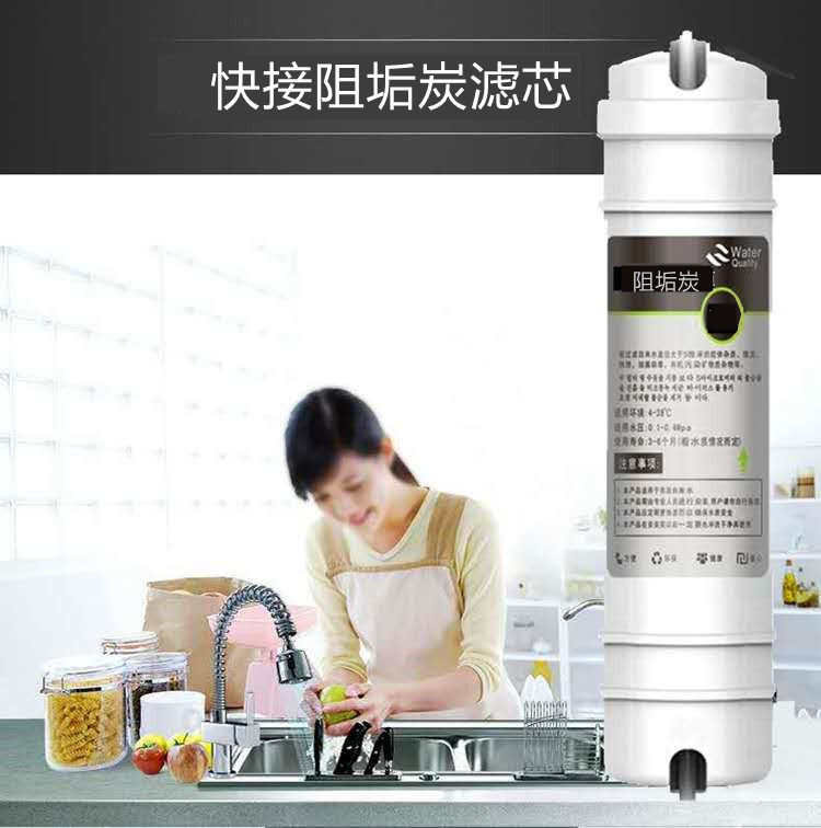 📚 韩式一体快接阻垢炭套装净水器阻垢炭烧结活性炭除水垢除余氯滤芯