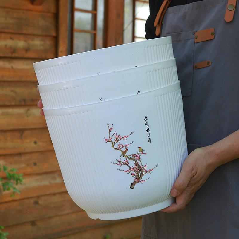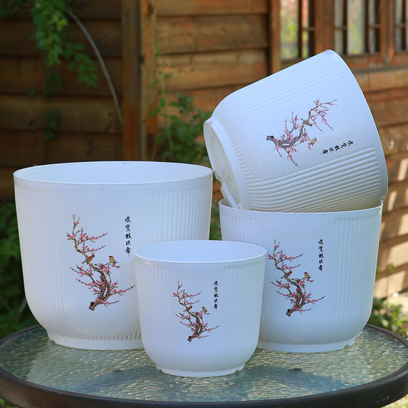 📚 新款加厚耐用环保白色大号塑料花盆树脂仿陶瓷绿植种球月季包邮